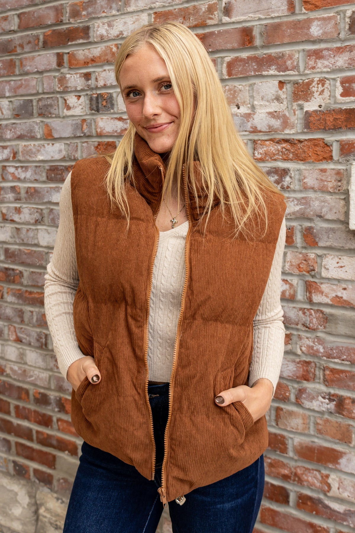 Get ready to stay warm and stylish this season with Cordially Yours! Our sold-out last year corduroy zip up vest features a slight puffer design, perfect for layering. Stay cozy and look cute with this must-have addition to your winter wardrobe. Don't miss out on the comfort and style of Cordially Yours!