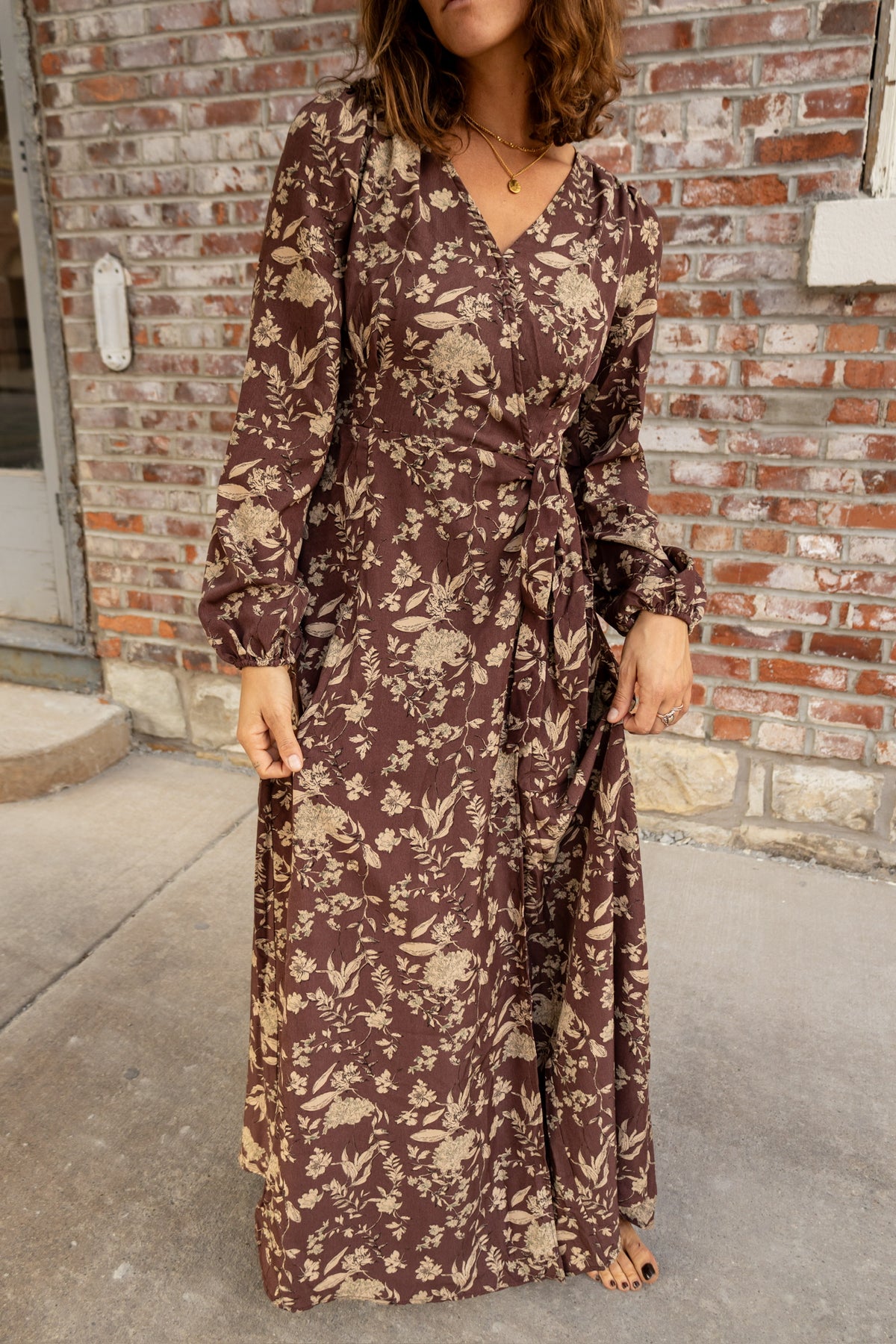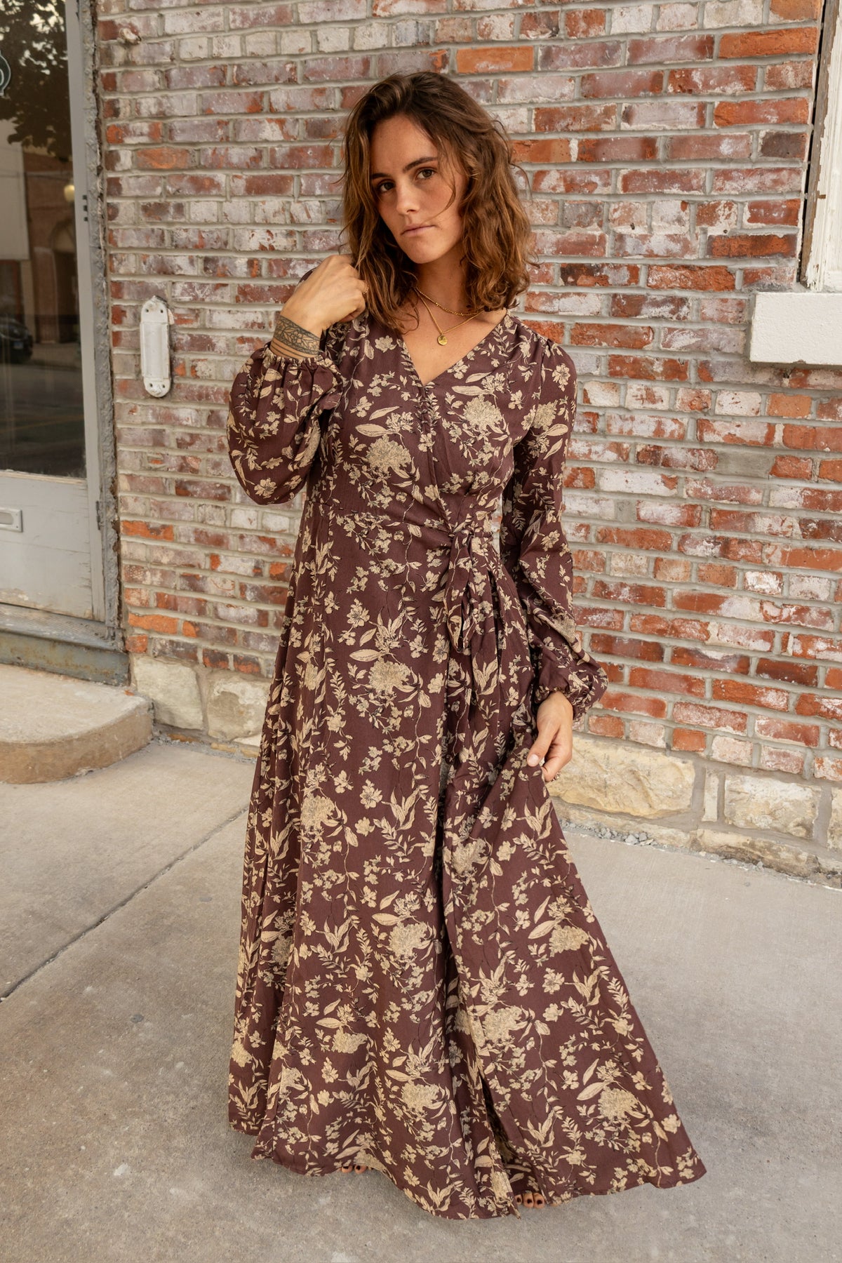 Transform your fall wardrobe with the stunning Fall Wrap! Featuring a beautiful maroon base and delicate tan florals, this floral wrap dress will add a touch of elegance and style to any occasion. Its maxi length offers both comfort and sophistication, making it a must-have for the season.