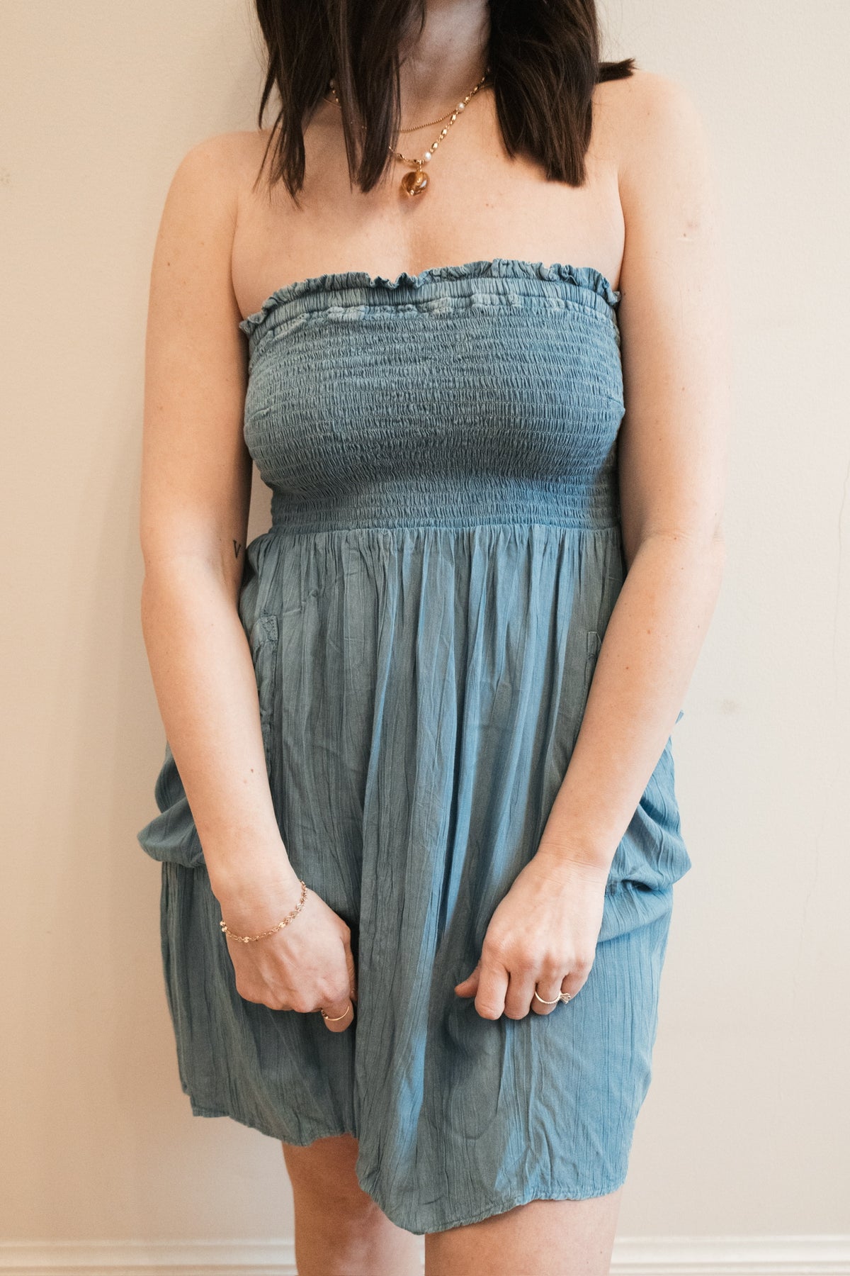 The Easy Breeze Strapless Dress is the ultimate blend of comfort and casual chic. Featuring a smocked top for a flattering, flexible fit and a relaxed silhouette that falls effortlessly, this dress is perfect for warm days. Practical side pockets add a touch of laid-back convenience, making it ideal for weekend outings, beach trips, or anytime you want a breezy, effortless look.