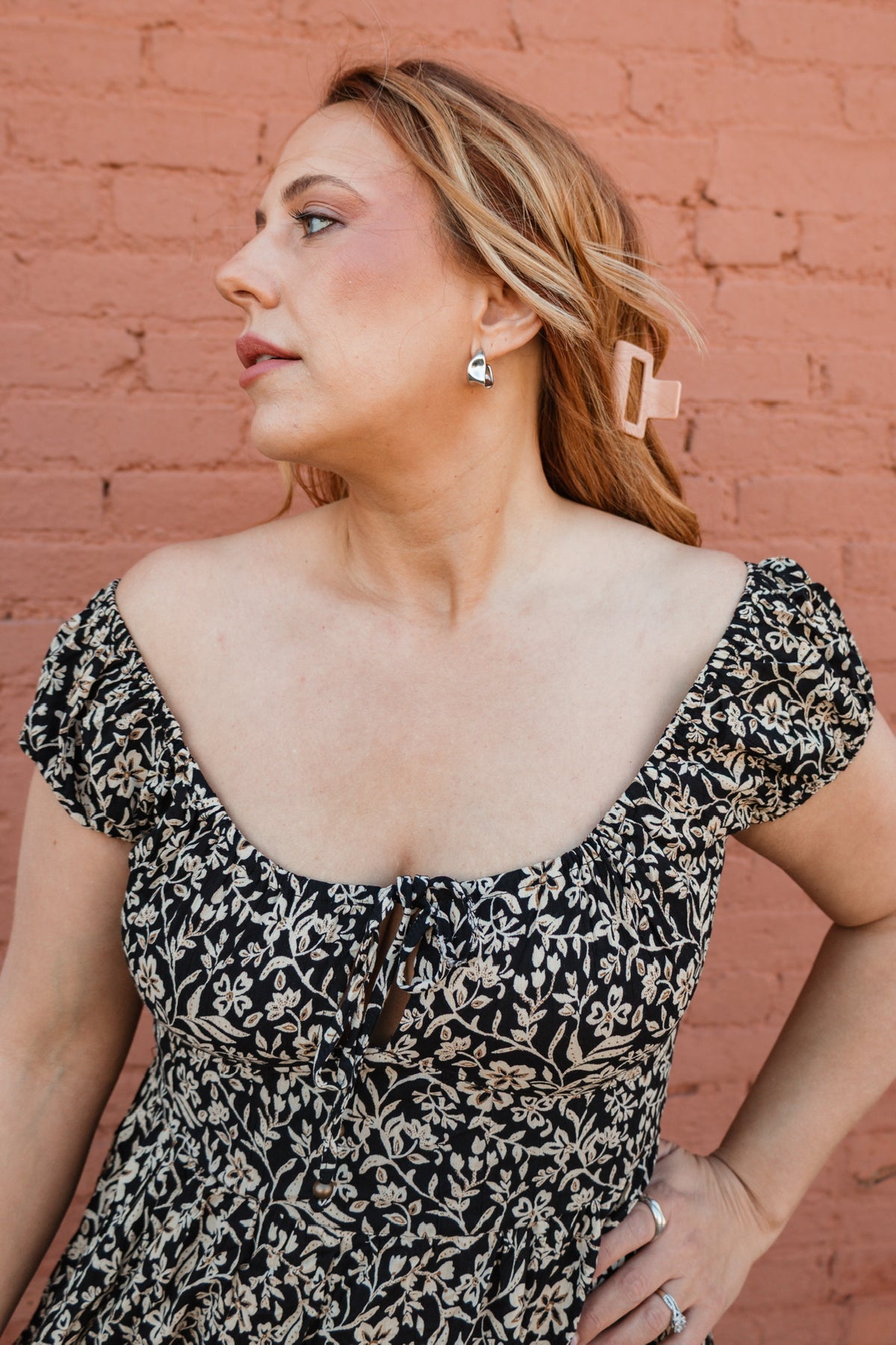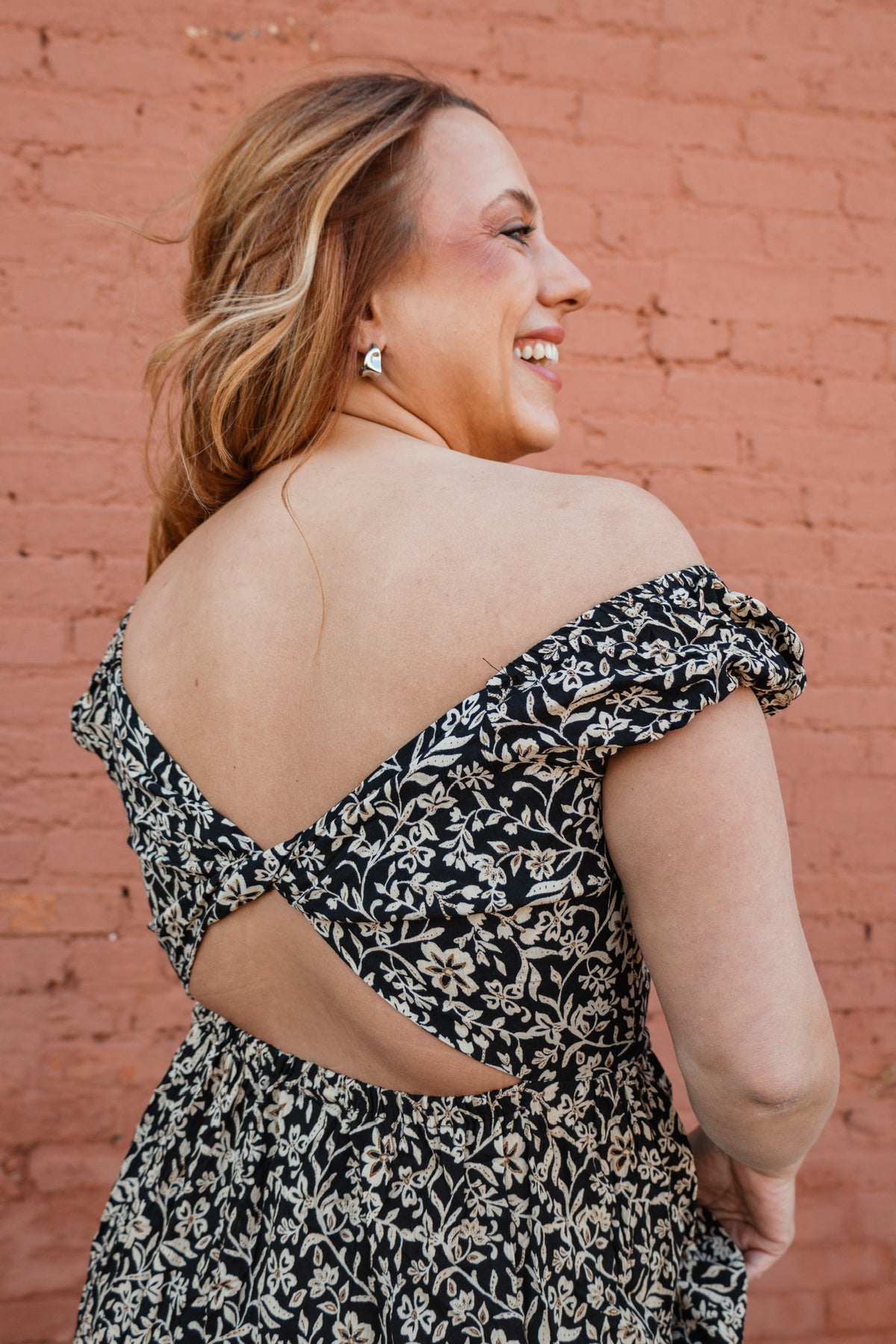 The Nightshade Bloom Dress is a striking blend of elegance and subtle intrigue. Featuring a black base adorned with soft cream florals, it boasts a scoop neckline, cap sleeves, and delicate peekaboo details for a modern, feminine touch. Perfect for garden parties, evening outings, or any occasion where you want a look that’s effortlessly sophisticated with a hint of playful allure.