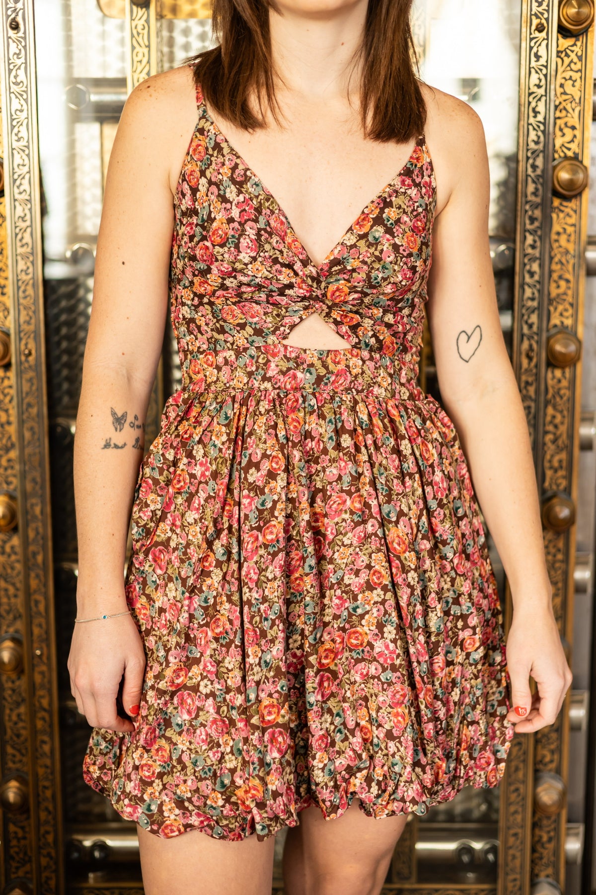 The Paint & Petals Bubble Dress is a playful statement piece with an artistic touch. Set on a rich brick-toned backdrop, vibrant blue, pink, and green florals bring this dress to life. The bubble silhouette adds volume and charm, creating an effortlessly fun shape that’s perfect for parties, brunch dates, or anytime you want a standout look that still feels easy and wearable.