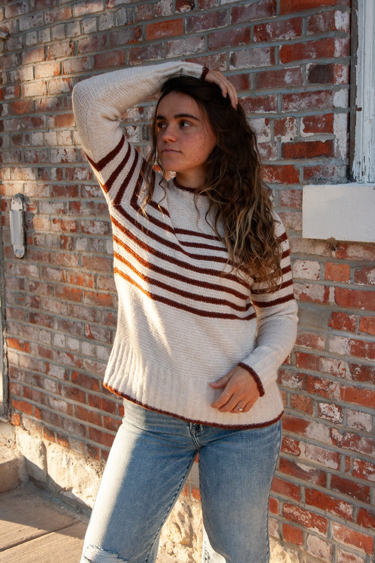 Warm, refined, and endlessly wearable, Cozy Copper blends rich contrast tones with a softly textured stripe knit for a look that’s both modern and inviting. The crewneck silhouette is accented with subtle pops of coppery warmth, adding depth and dimension to this timeless piece. Luxuriously soft and effortlessly versatile—it’s the sweater you’ll reach for season after season.