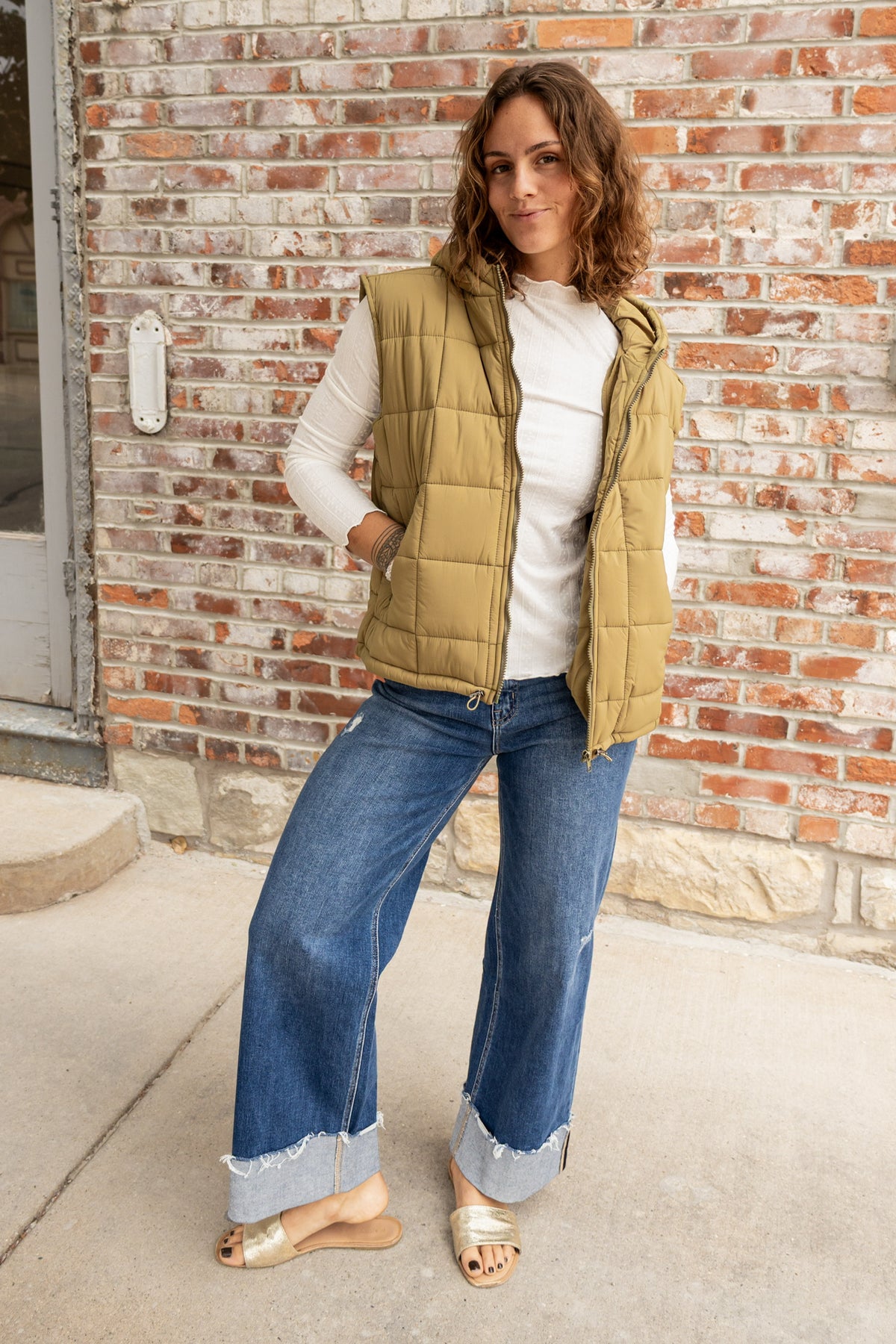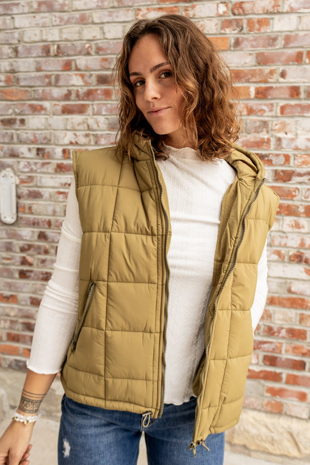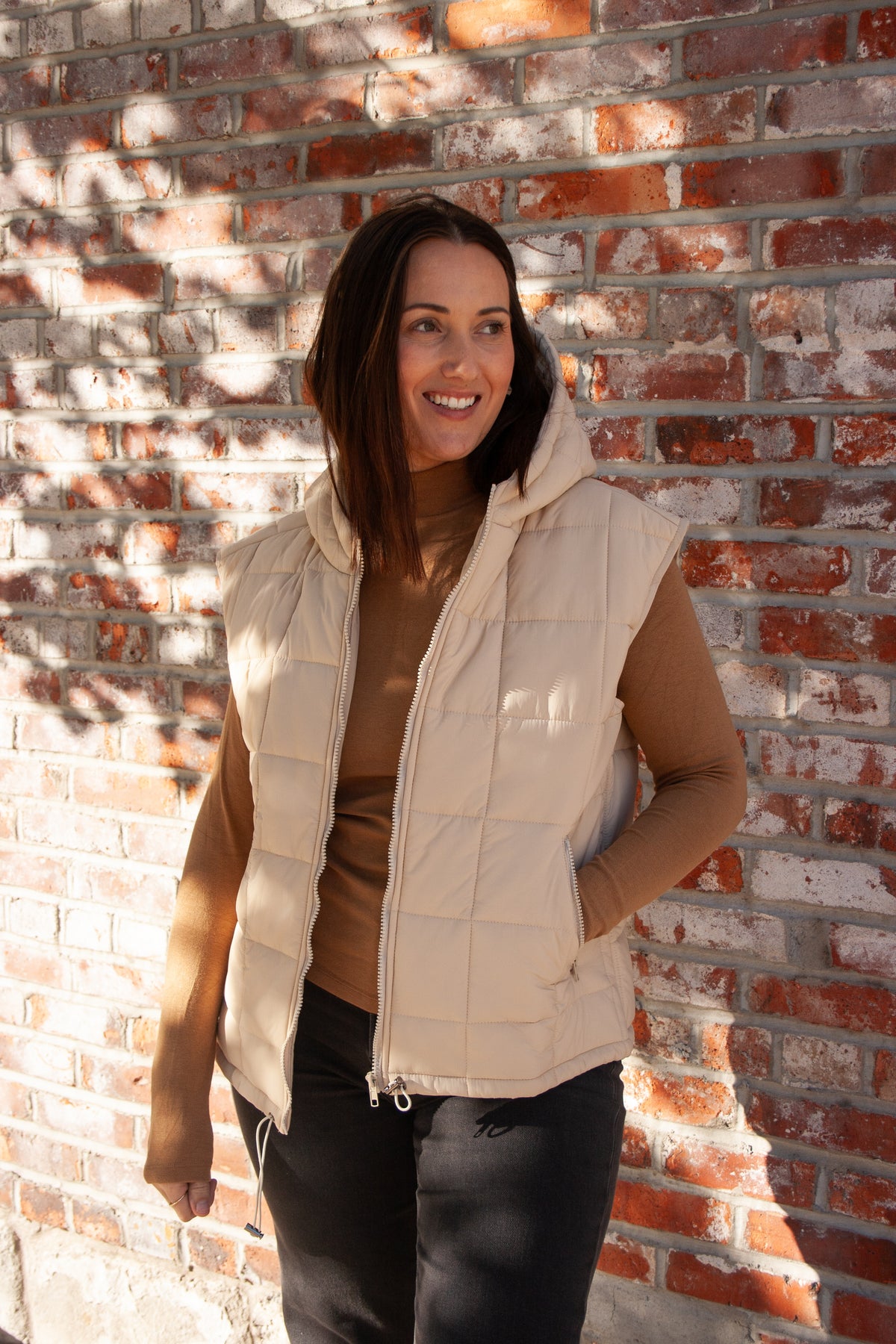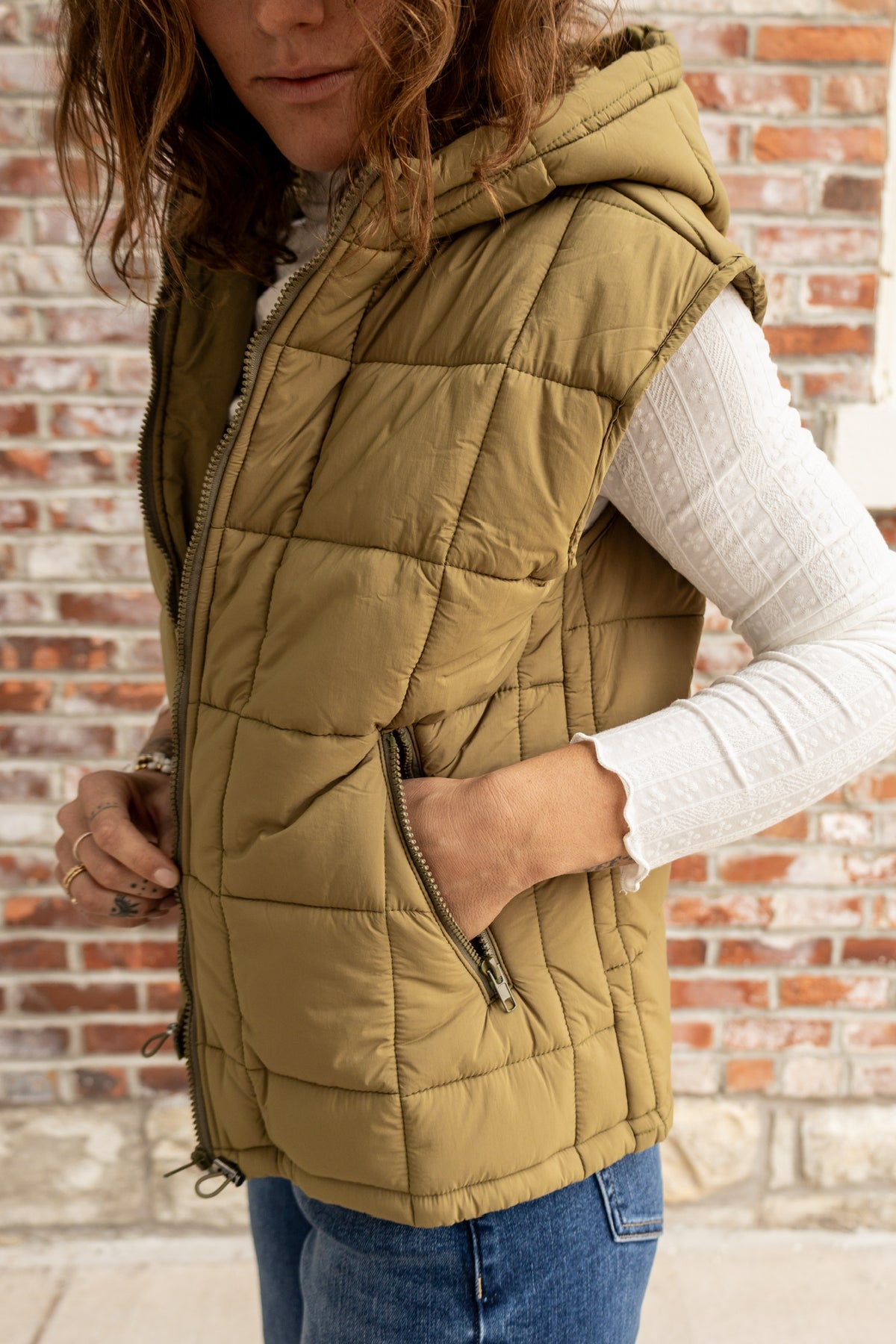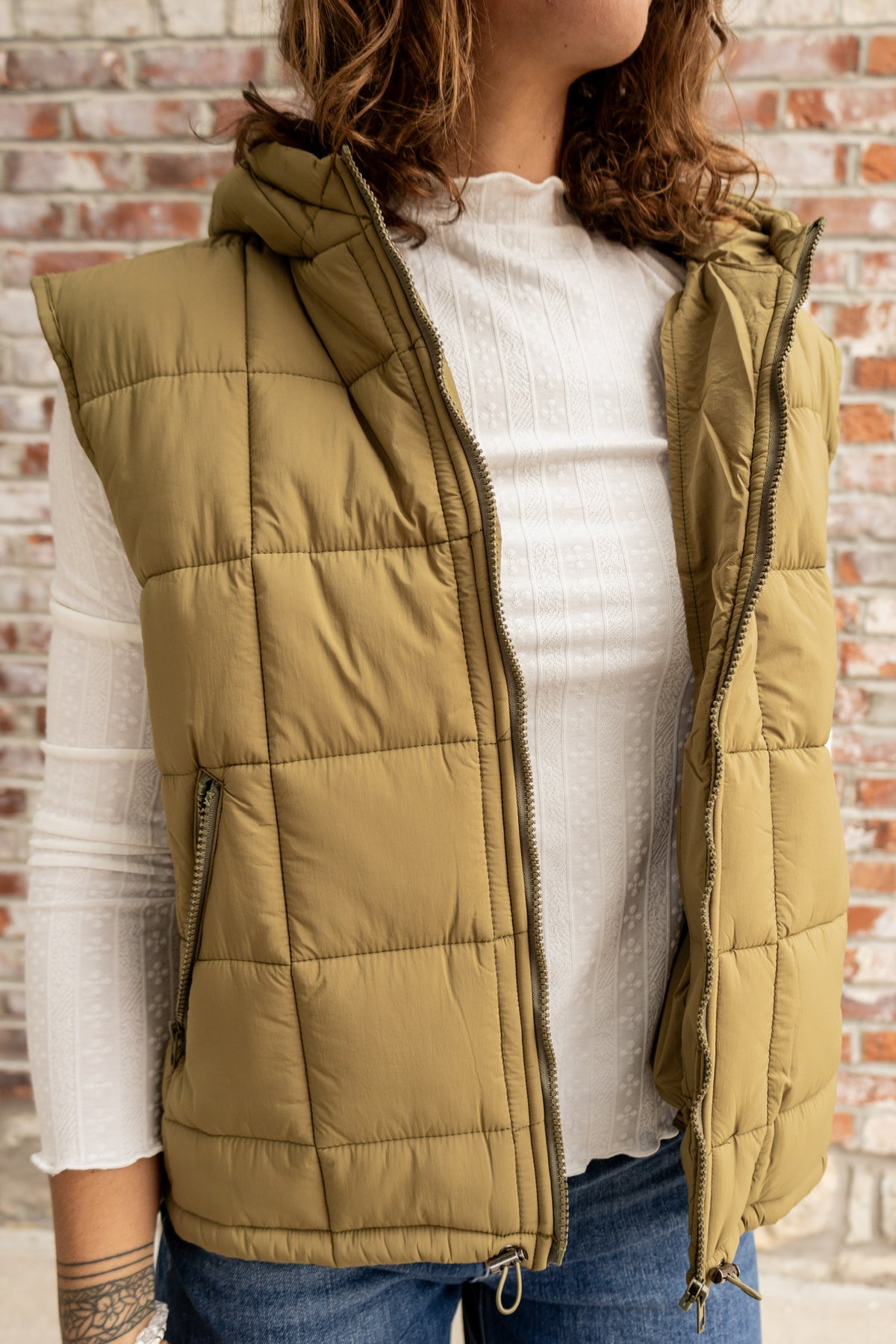 Be ready for any weather with our Hooded Puff! This puffer vest features a convenient full zip up design and zip pockets to keep your belongings safe. With its hood, you can easily layer up and keep yourself warm. Don't let the cold stop you, stay stylish and protected with Hooded Puff!