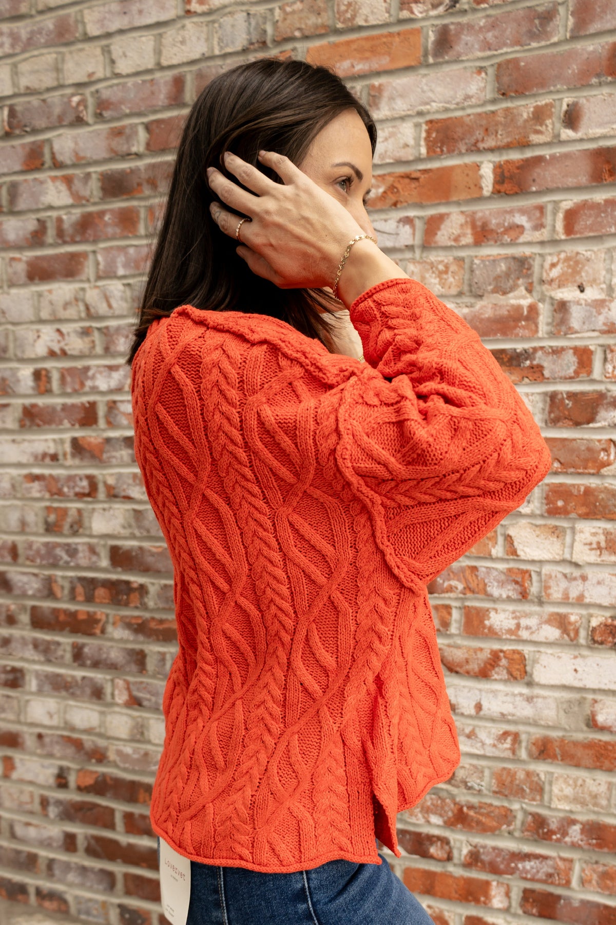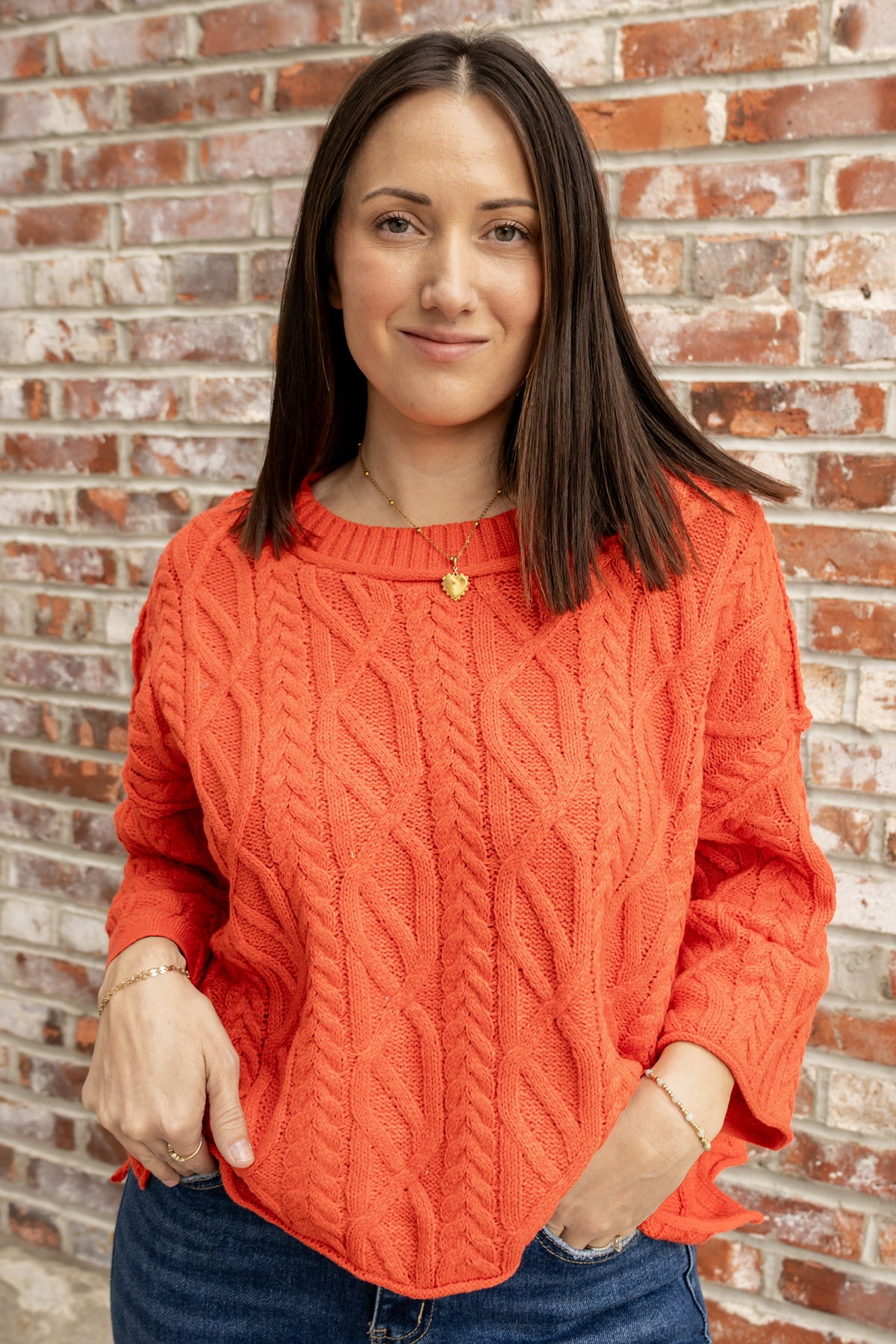 Effortlessly stylish and subtly detailed, this round neck sweater brings a modern twist to a classic cable knit. Featuring quarter-length sleeves and a cropped fit, it’s designed with side slits for a touch of movement and ease. The textured knit adds timeless charm, while the silhouette makes it perfect for layering or wearing solo. A versatile piece that’s equal parts cozy and chic.