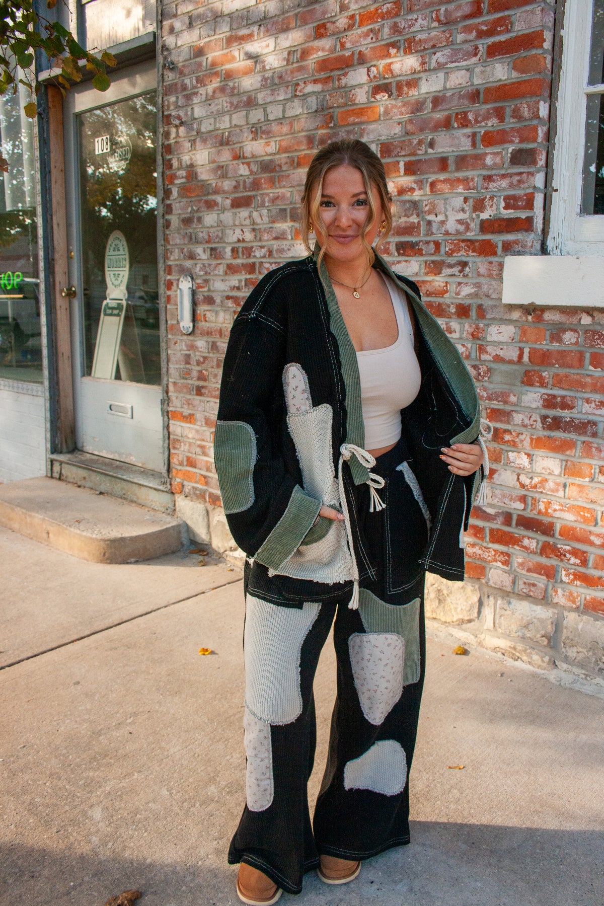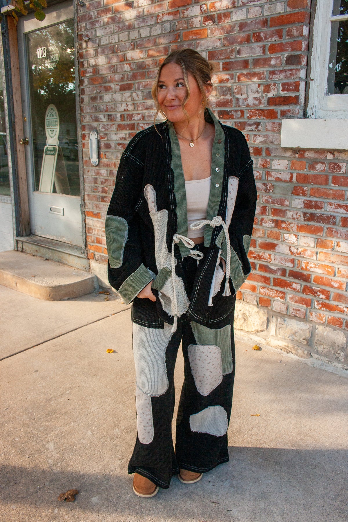 Easy layers, elevated. The Thermal Patches Top is a relaxed fit cardigan crafted in cozy thermal knit with wide sleeves for an effortlessly draped silhouette. Patch details bring a playful, lived-in charm, while the open-front design makes it the perfect throw-on-and-go layer for lounging or styling up your casual looks.