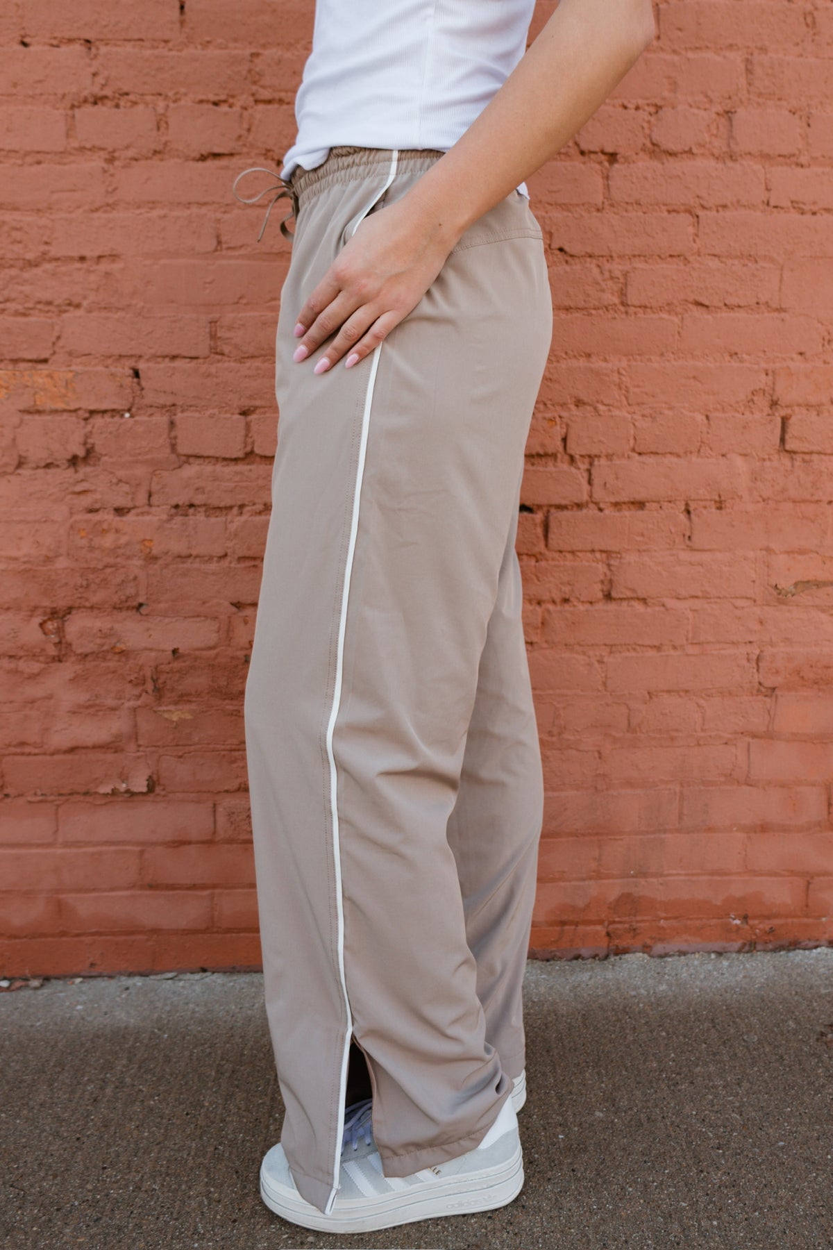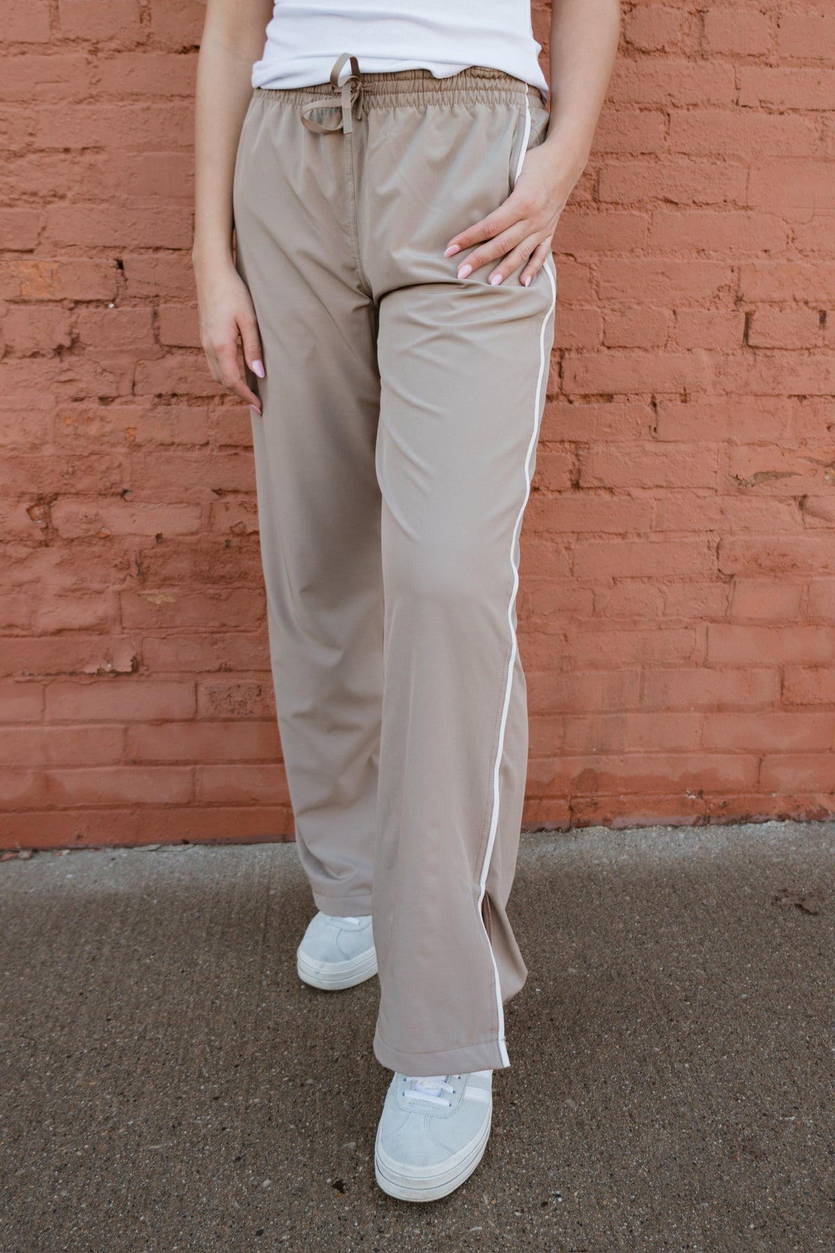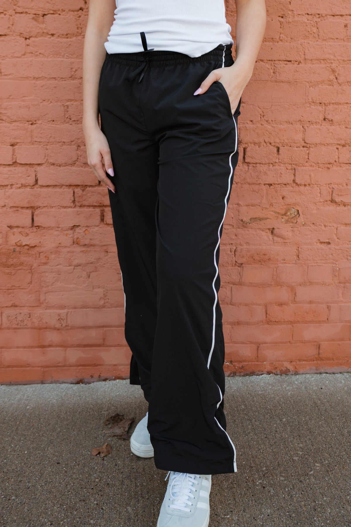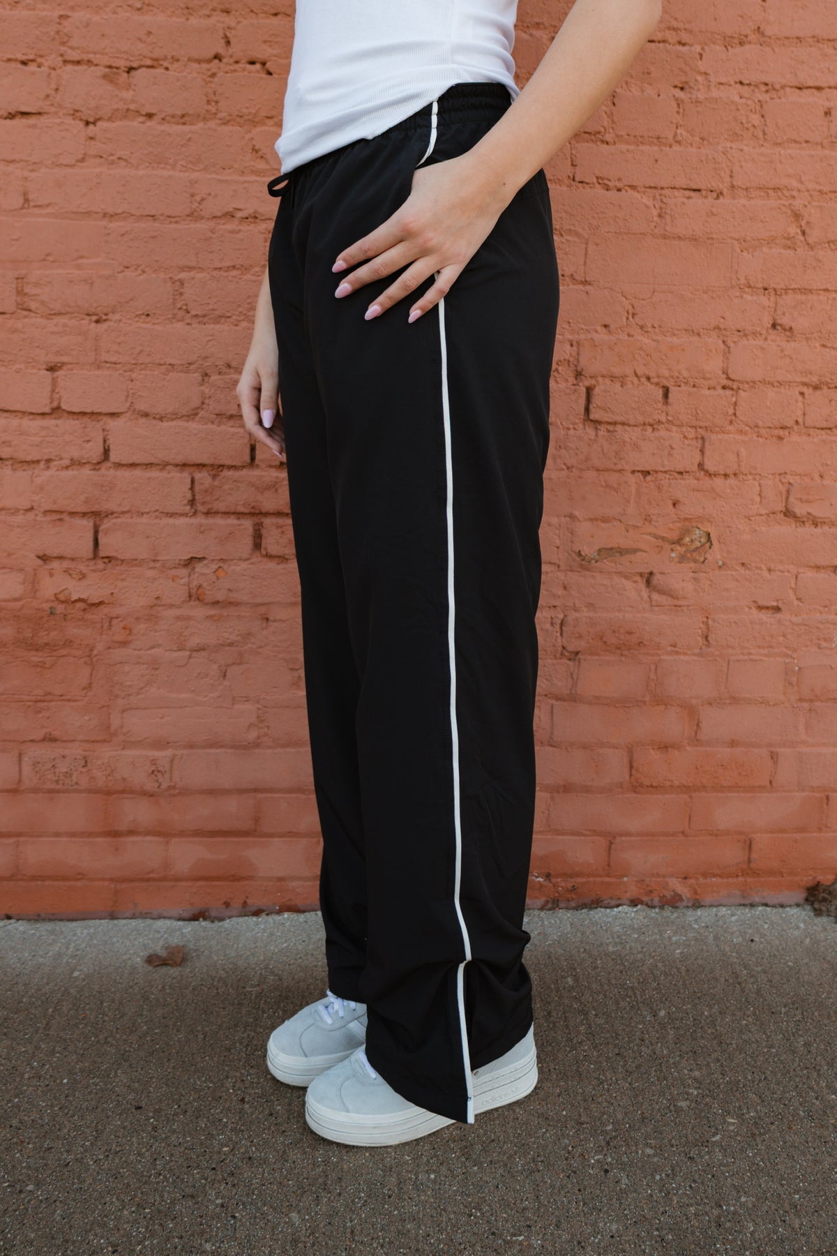 Sleek with a sporty edge, this Finish Line Track Pant is made to move with you. Designed with a comfortable elastic waistband and contrast piping down the sides, it brings a classic athletic feel with a modern twist. The slit hem adds extra movement and a flattering drape, making these pants just as perfect for off-duty days as they are for elevated athleisure looks. Pair with sneakers or dress them up for an effortlessly cool finish.