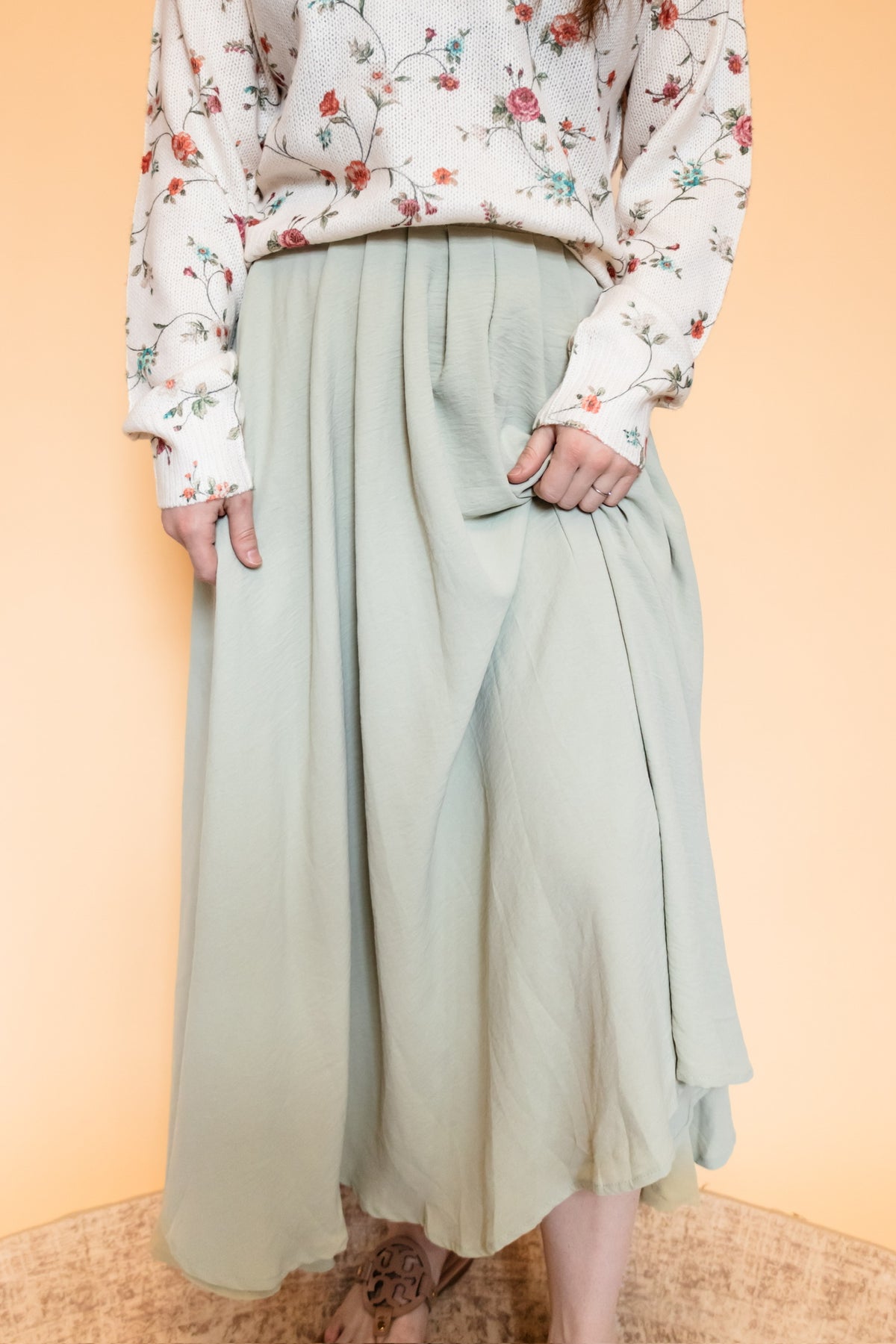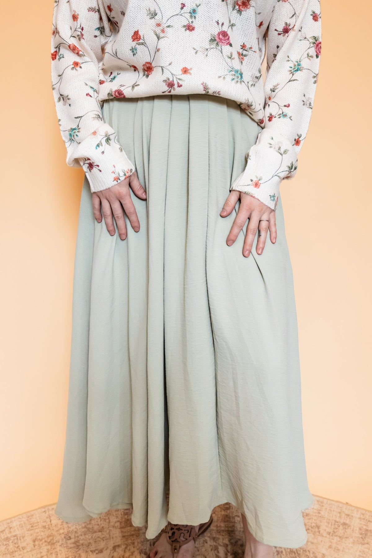 Sage Haven brings effortless elegance to your everyday wardrobe. This thoughtfully designed skirt features a double-lined construction in a calming sage green that complements any complexion, paired with a flattering longer length for sophisticated coverage. The half elastic waistband offers the perfect balance of comfort and structure—move freely without sacrificing a polished silhouette. Whether you're dressing for work, weekend outings, or casual gatherings, this versatile piece transitions seamlessly from season to season.