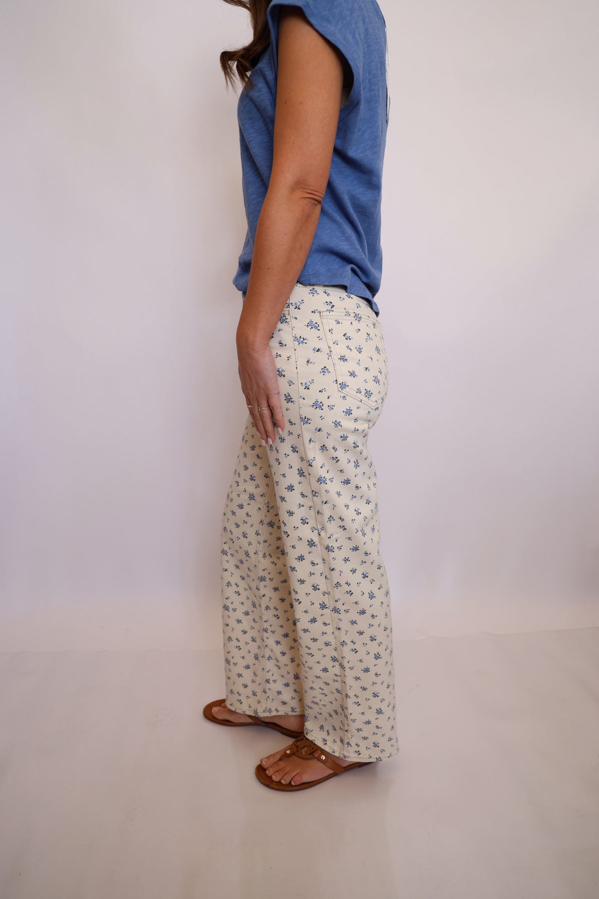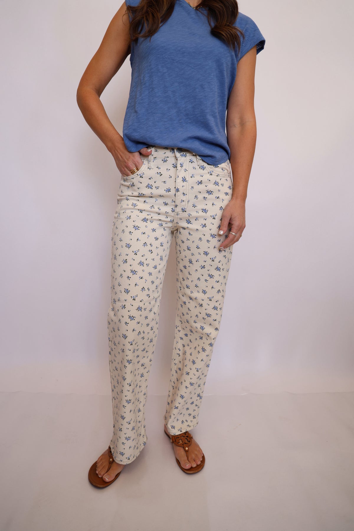 These cream denim jeans bring a fresh twist to your everyday lineup with delicate blue floral details that add just the right touch of charm. Designed in a classic straight leg fit, they offer a flattering, easy silhouette that pairs perfectly with everything from casual tees to dressier blouses. The neutral cream base keeps them versatile, while the subtle floral accents make them feel extra special, perfect for spring days and beyond.