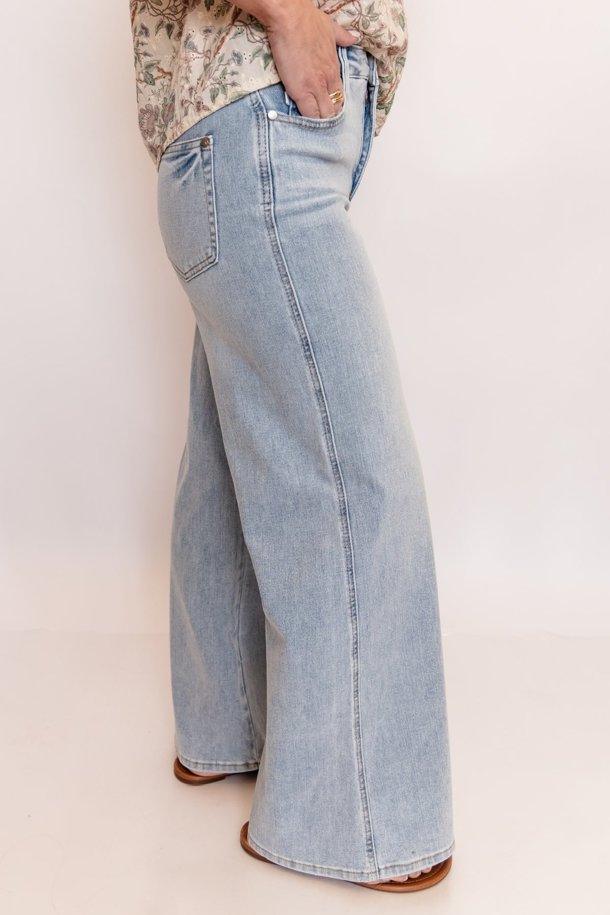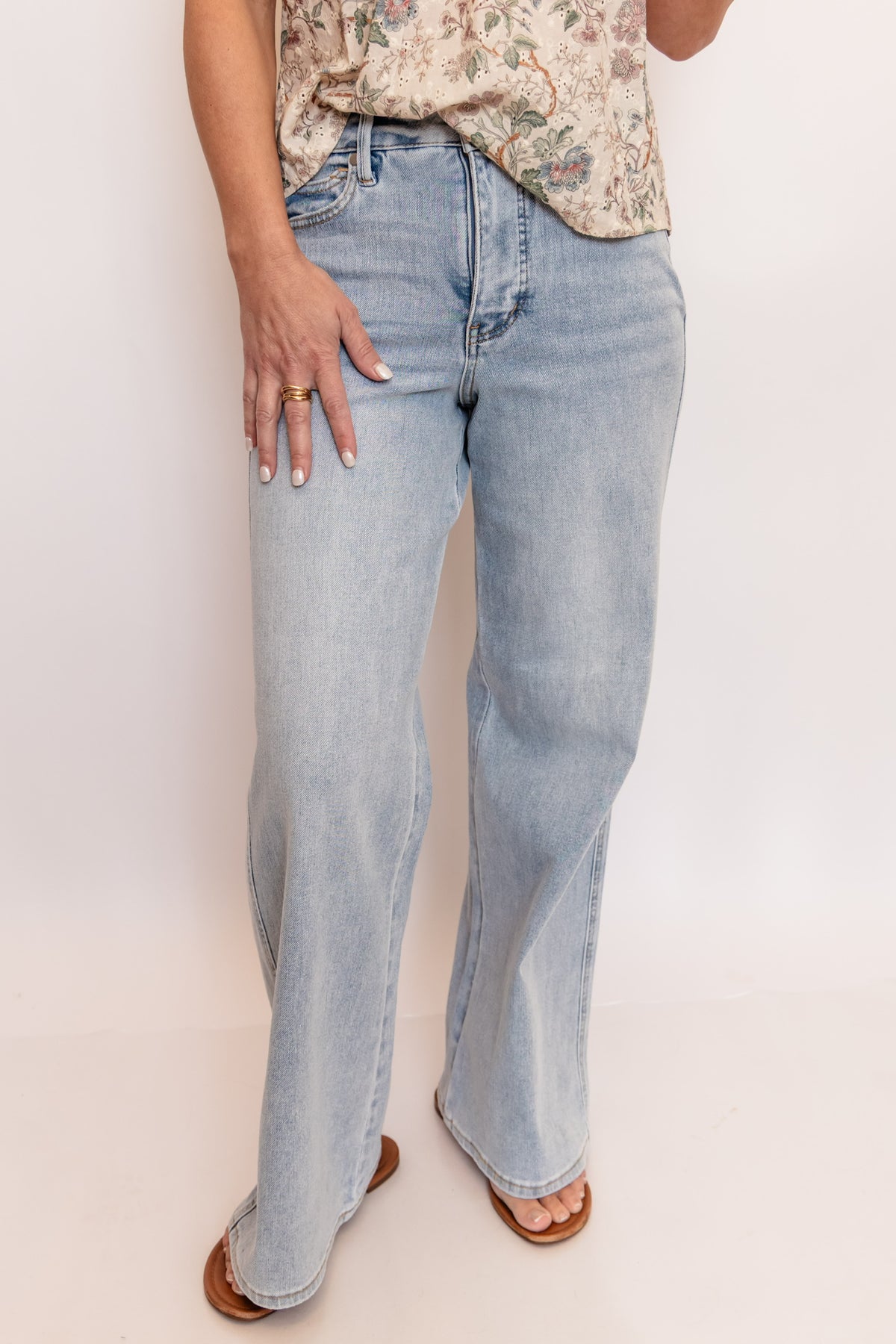 Made just for our petite girls. These light wash jeans feature a flattering high-rise fit with a retro-inspired wide leg that elongates without overwhelming your frame. Designed with a clean, non-distressed finish, they keep that effortless, polished look while still giving off vintage vibes. The proportions are perfectly tailored for a shorter inseam, so you get that ideal full-length fit, no cuffing required. Easy, comfortable, and endlessly versatile, these are the jeans you’ll reach for on repeat this spring!
