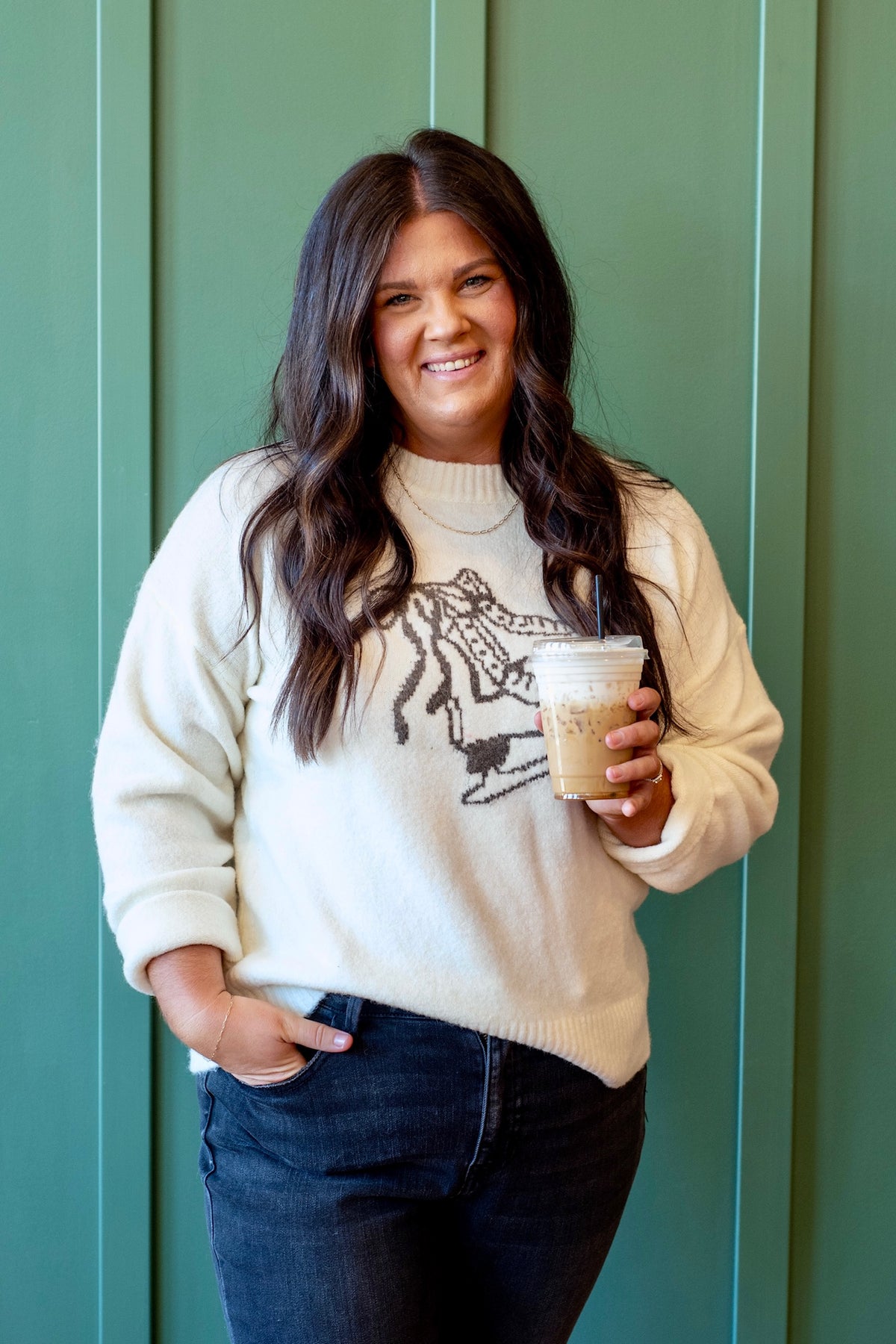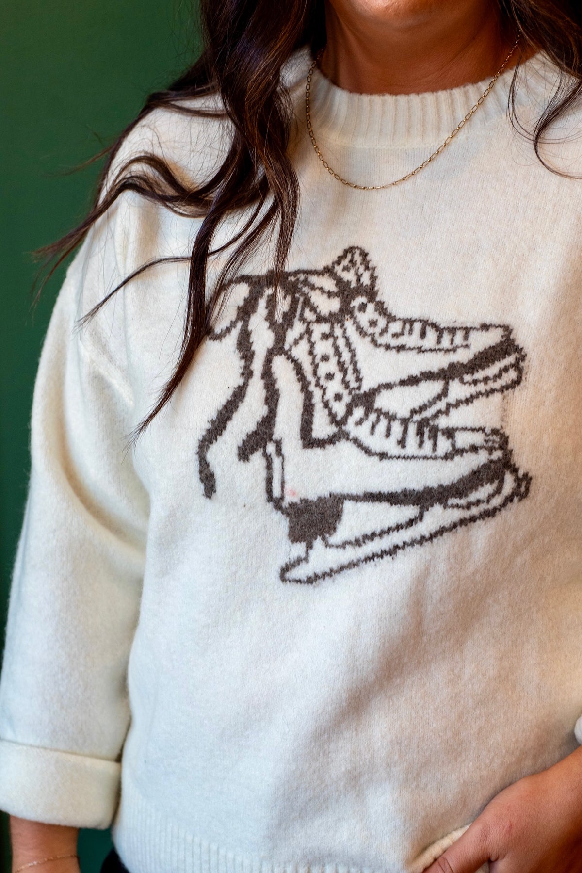 The Cozy Skate pullover sweater wraps you in warmth with its soft cream knit fabric. Featuring charming ice skate details, it brings a playful and nostalgic winter vibe to your wardrobe. Perfect for cozy days indoors or festive outdoor strolls, this sweater adds a vintage touch to your chilly-season style.