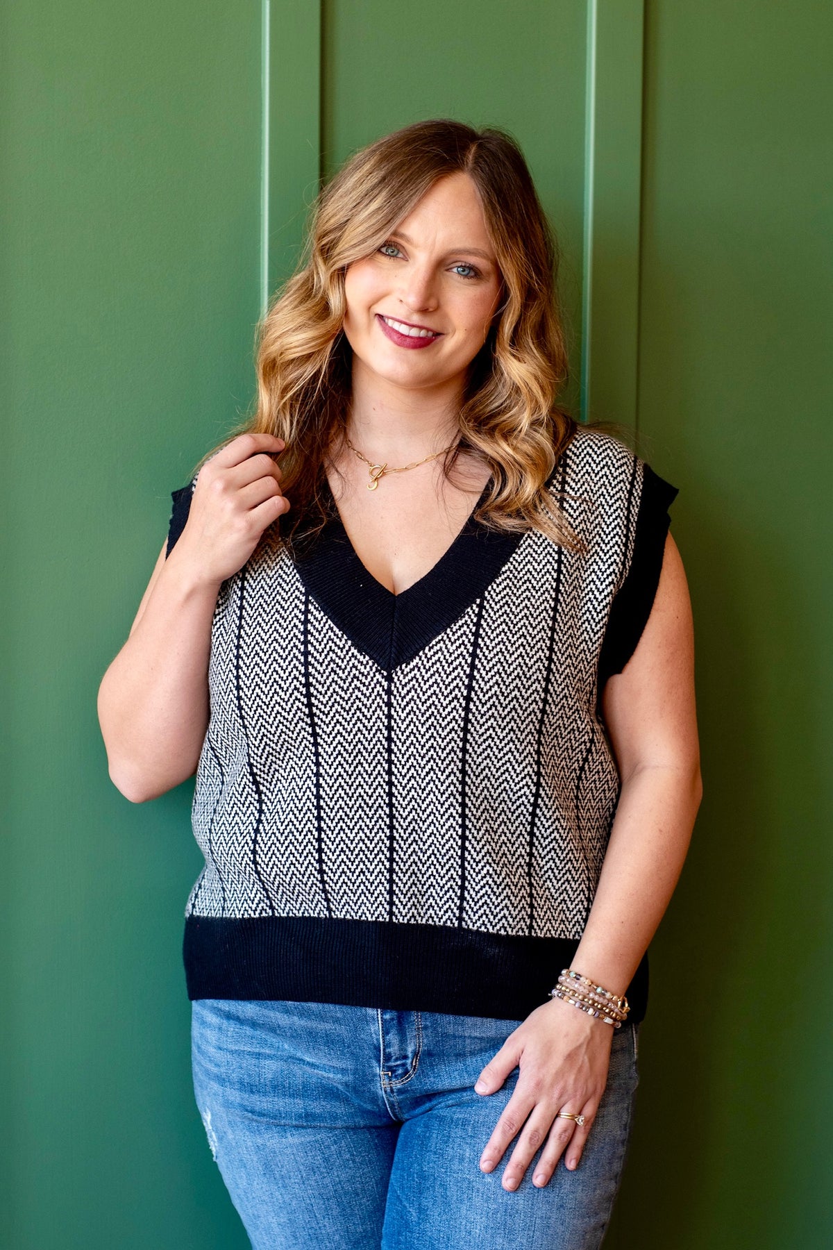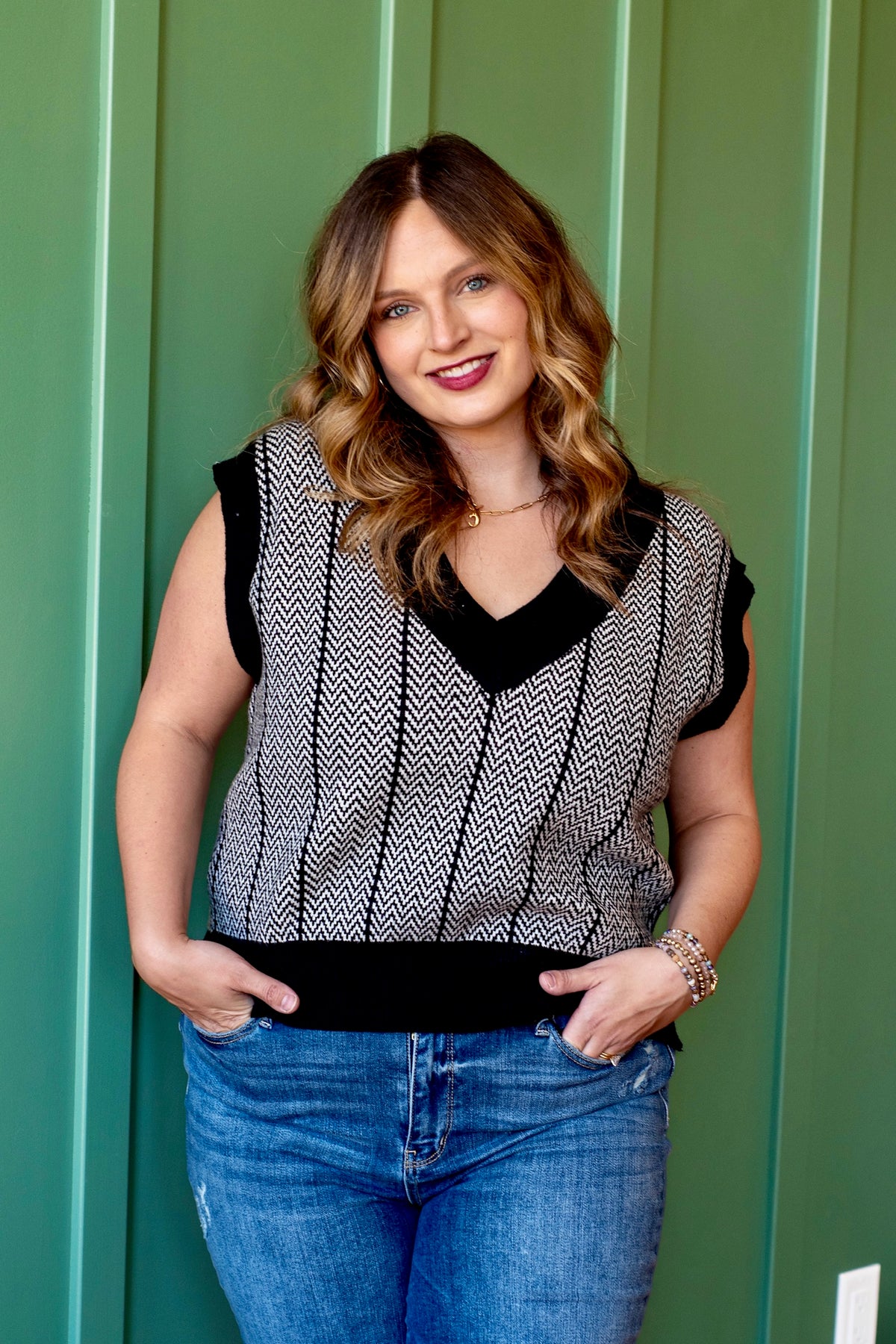 Bold and modern, the Ziggy sweater vest brings instant edge to your layering game. Designed with a sharp black-and-white zig zag pattern and a classic V-neckline, this sleeveless knit is equal parts playful and polished. Perfect over a crisp button-down or styled solo, it’s a versatile piece that makes a statement with minimal effort.
