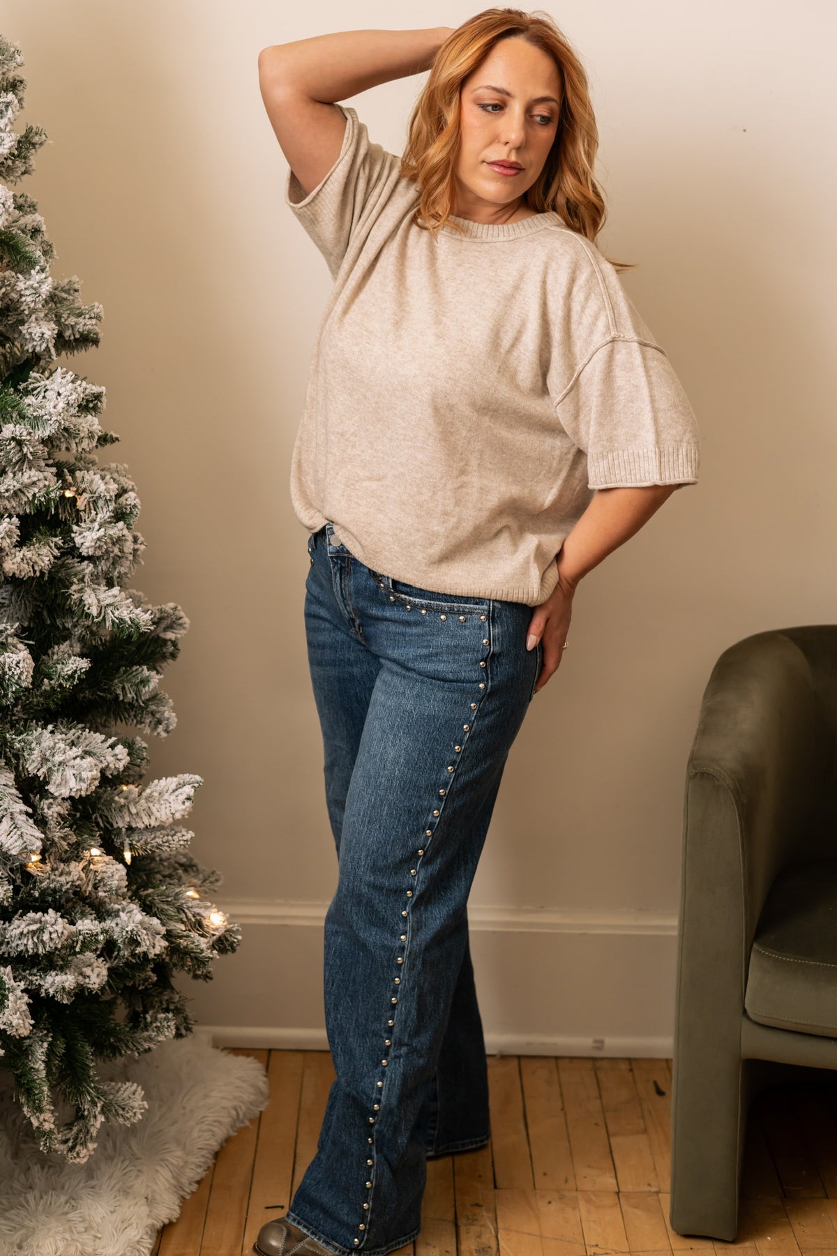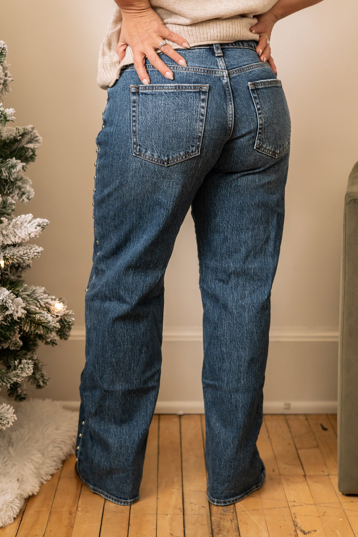 Make room in your lineup for Studded Sides — the low-rise jean that delivers attitude with ease. Crafted in a rich dark wash, this baggy silhouette serves up that effortless, lived-in vibe while keeping things bold with metallic studs lining each side seam. The result? A perfect balance of street-cool edge and laid-back comfort. Pair them with a fitted tee or a slouchy sweater — either way, these jeans steal the spotlight.