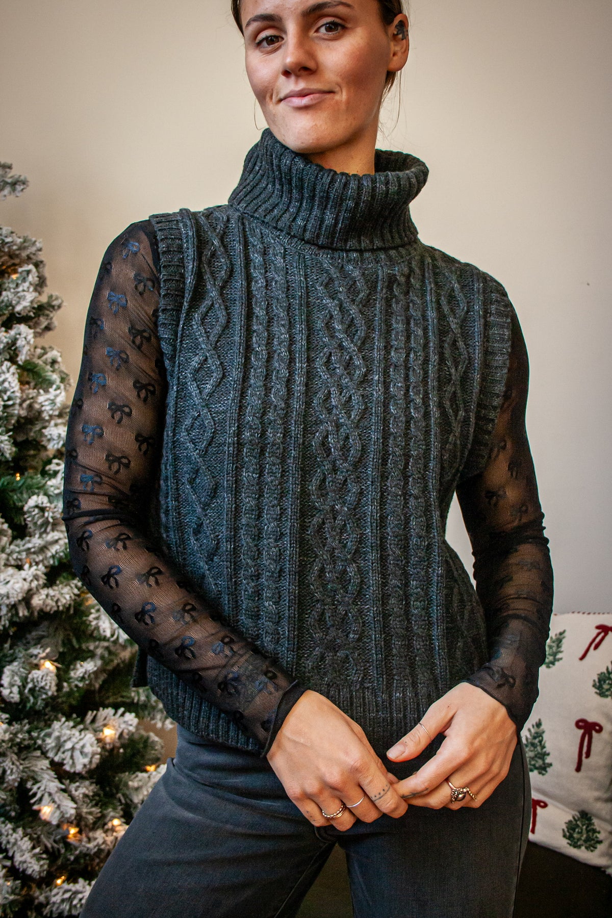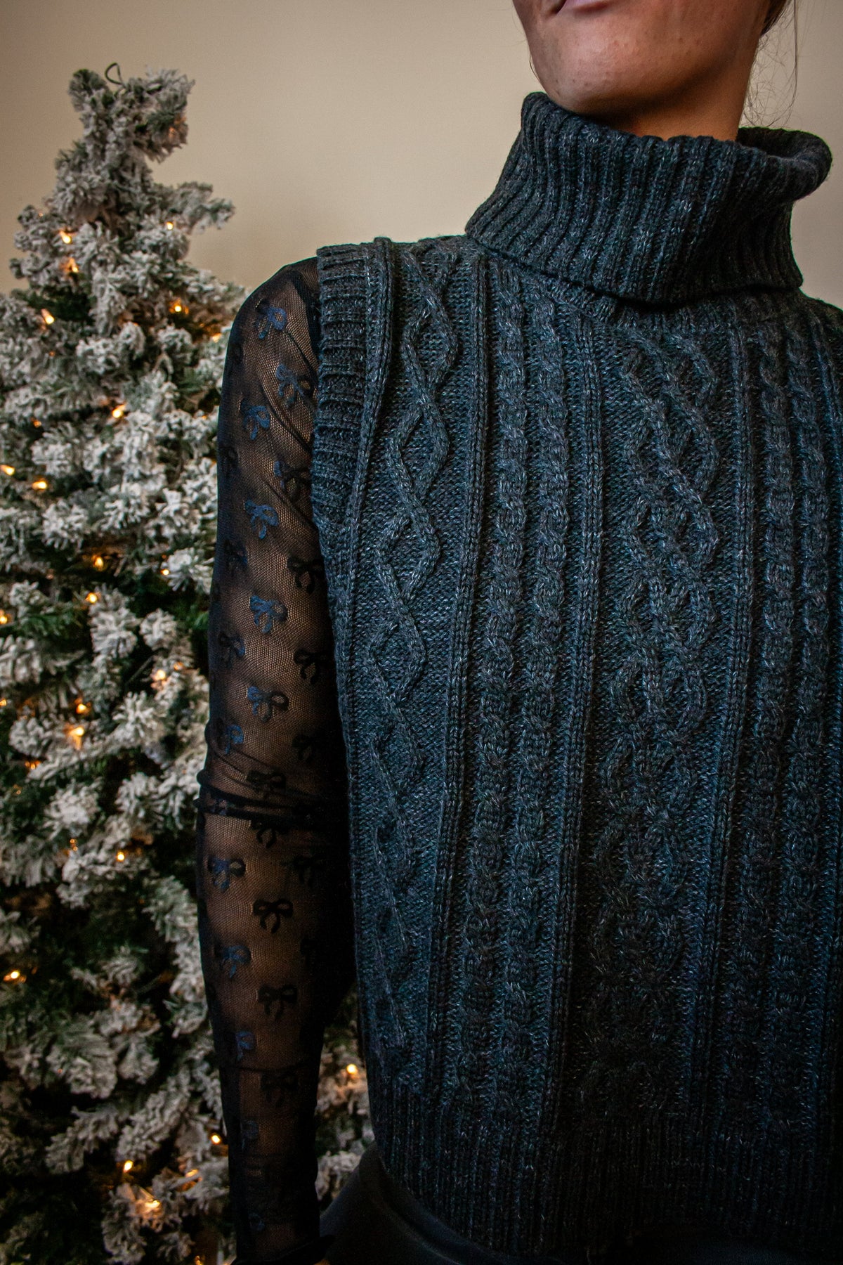 The Cabin Coziness sweater vest is the ultimate layering essential for chilly days. Crafted in a soft charcoal knit, it features a classic turtleneck and a relaxed fit that pairs perfectly over long sleeves or under jackets. With its cozy texture and versatile style, this vest brings warmth and timeless charm to any outfit.