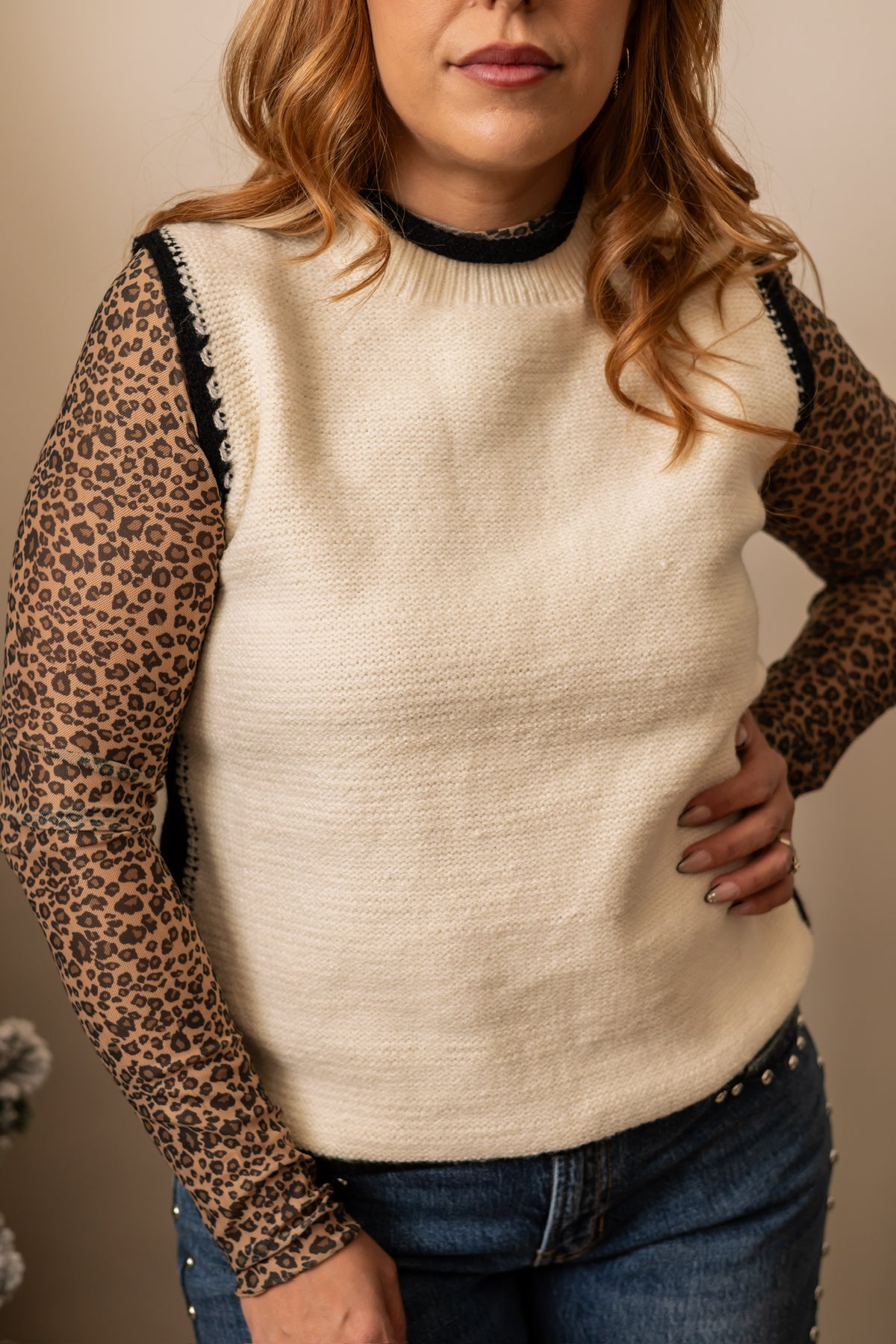 Layer effortlessly with this cream sweater vest, defined by a crisp black outline that adds subtle sophistication. The classic knit construction offers warmth and versatility, making it perfect for pairing over long-sleeve shirts or dresses. Its timeless design transitions seamlessly from casual weekends to polished office settings, while the neutral palette ensures it complements any wardrobe.
