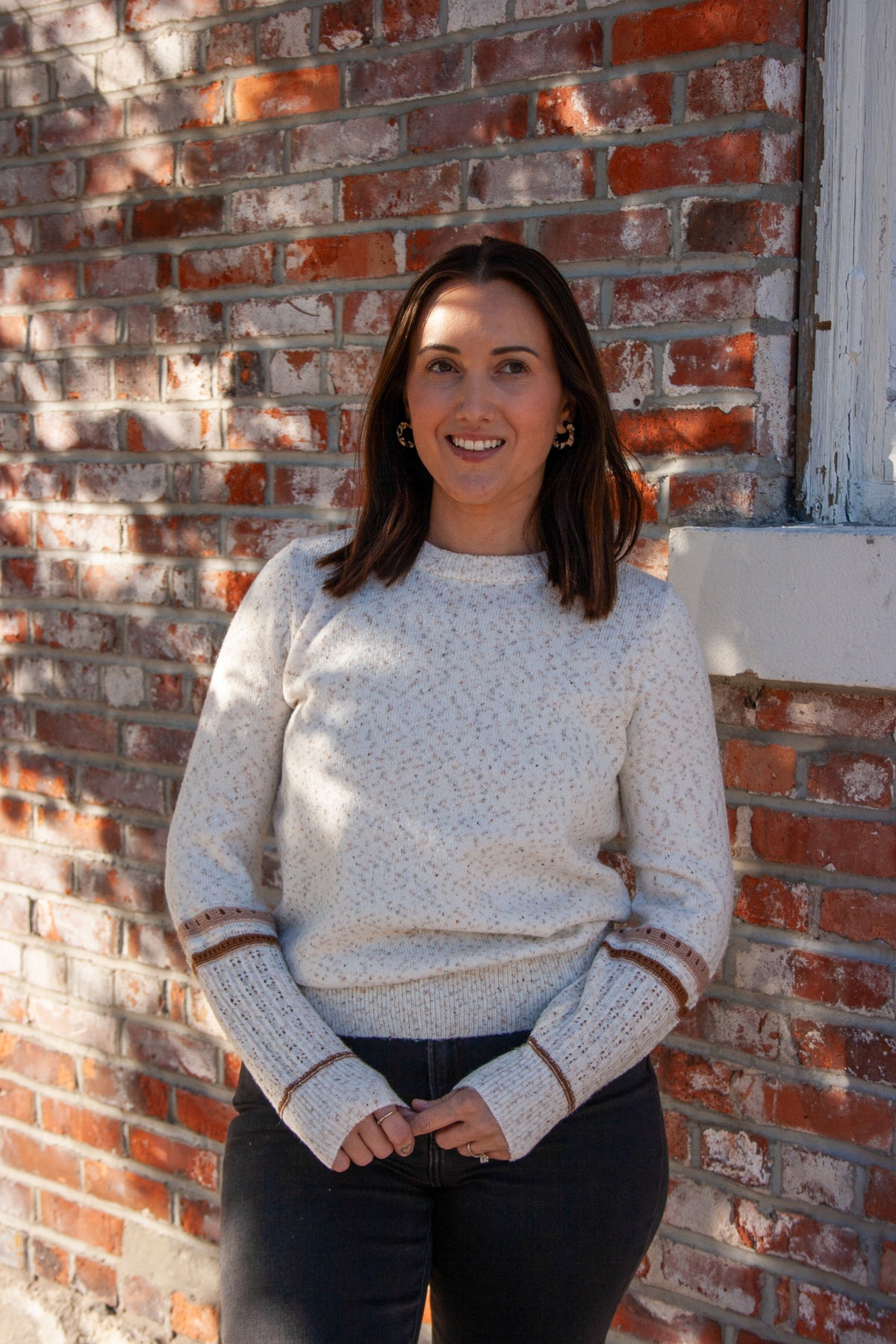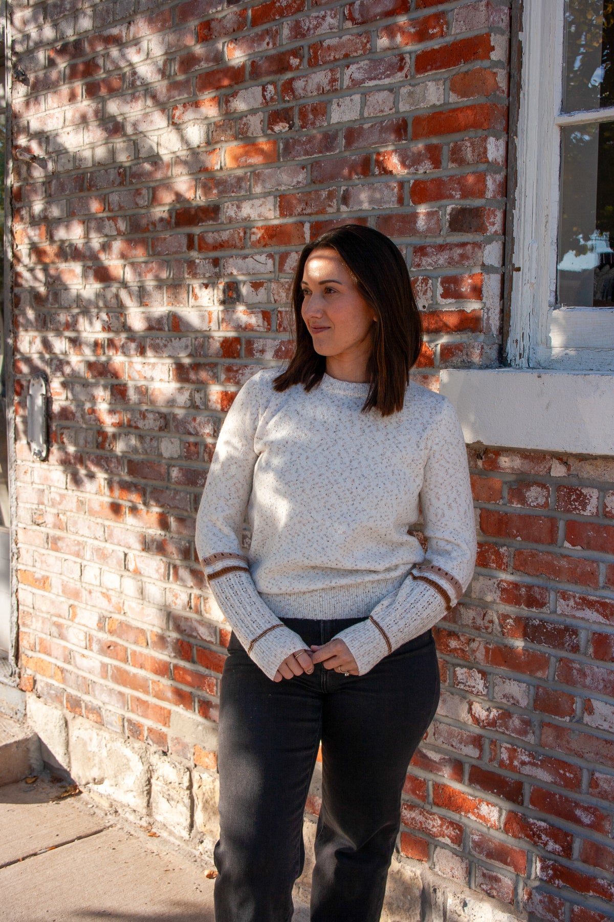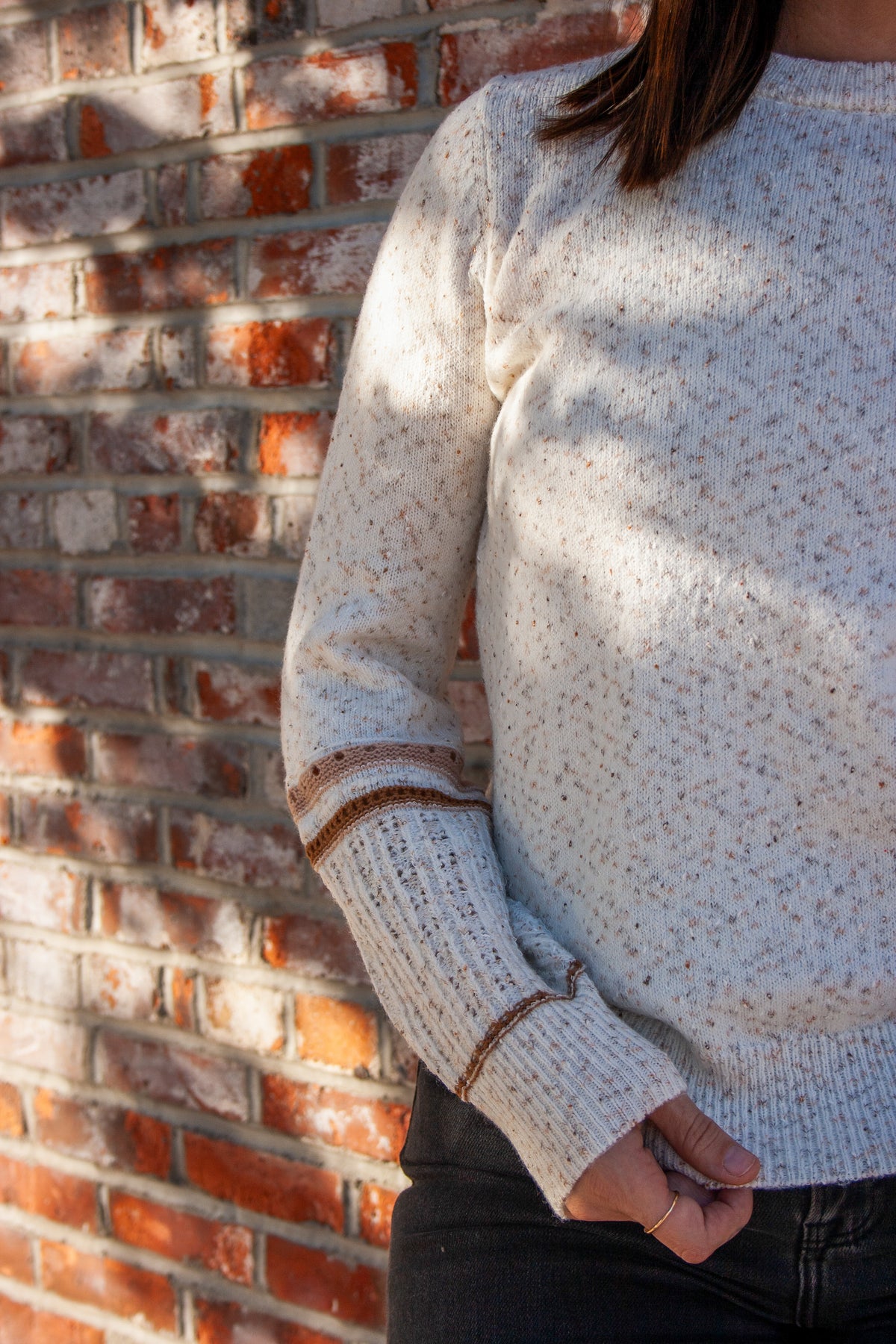 Softly textured and effortlessly charming, Fall Sprinkle captures the cozy essence of the season. Crafted in a warm oatmeal hue with subtle flecks of color woven throughout, this crewneck sweater features delicate pointelle accents for a touch of feminine detail. With its lightweight feel and timeless silhouette, it’s the perfect knit to layer, lounge, and live in all autumn long.