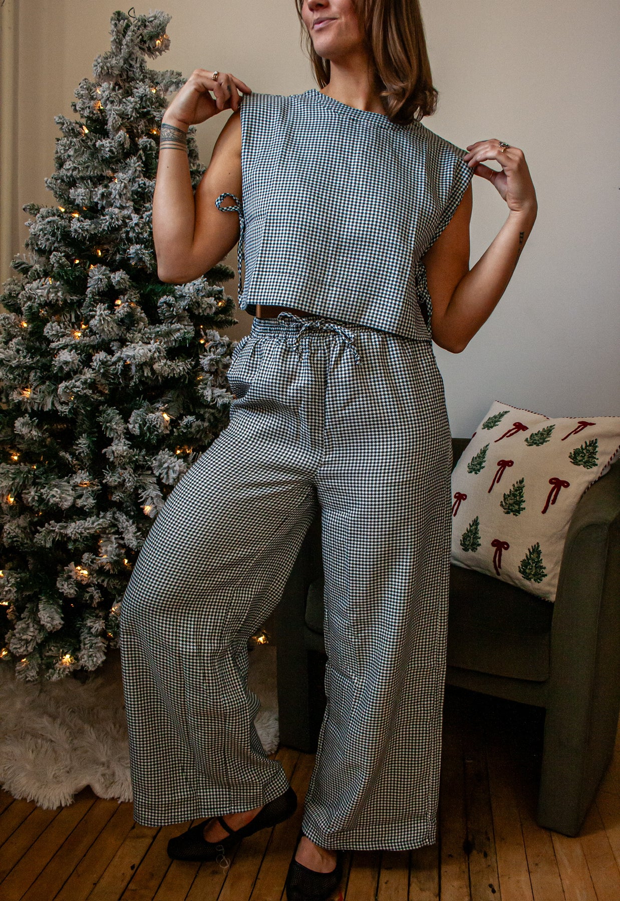 Unleash your style with these full-length houndstooth bottoms. Featuring a drawstring waist tie, these pants will leave you with a chic and bold look. Perfect for a fun day out and about!