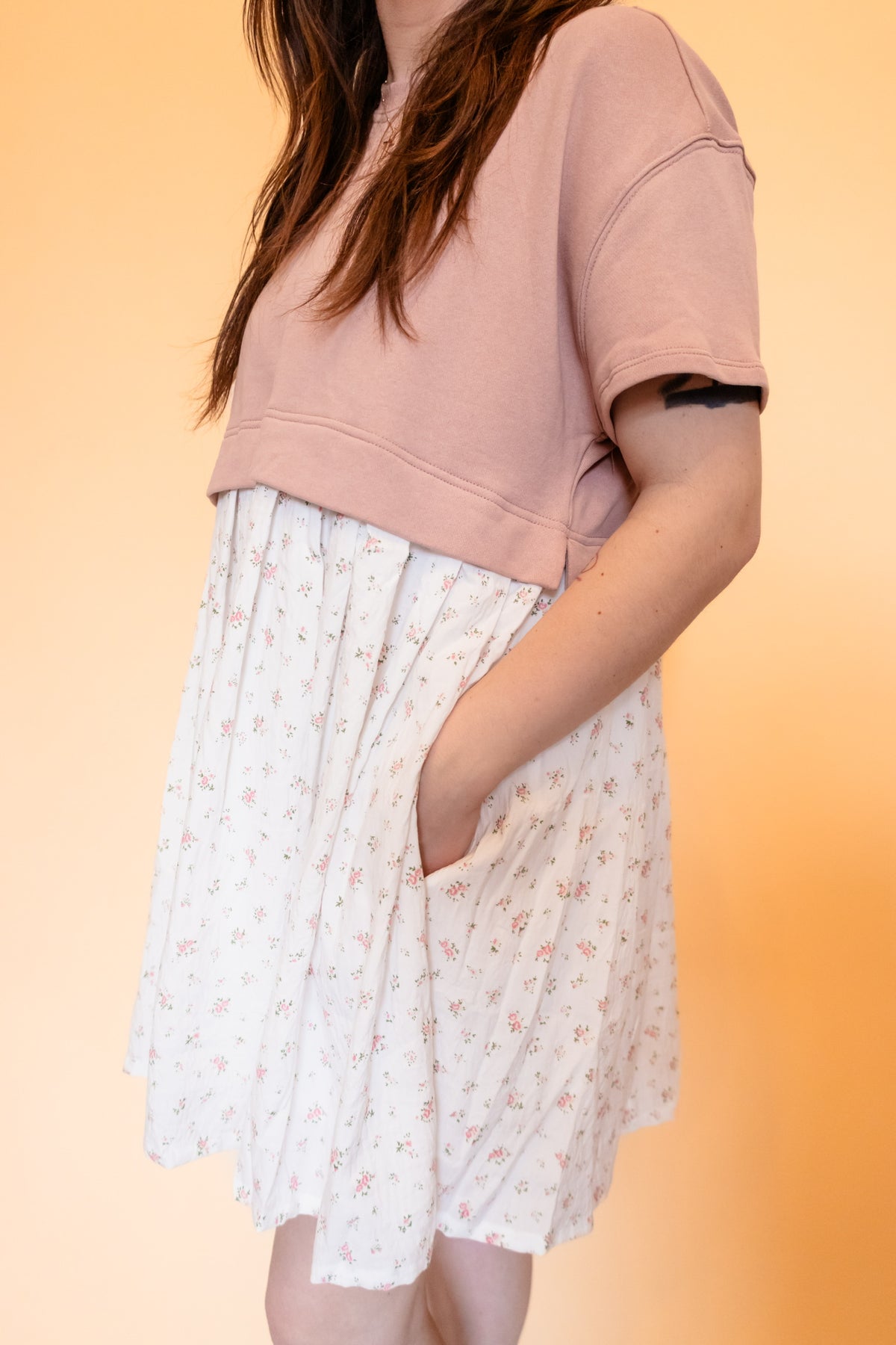 Playful florals meet cozy knit in this charming mini dress that's ready for anything. Featuring a chic back keyhole with button details and practical side pockets, it's the perfect blend of style and function. The lined silhouette skims beautifully while the mixed-media construction—combining soft cotton and polyester—keeps you comfortable all day long. At 33½" in length, it's the ideal length for showing off your favorite shoes. Fun, flirty, and totally wearable.