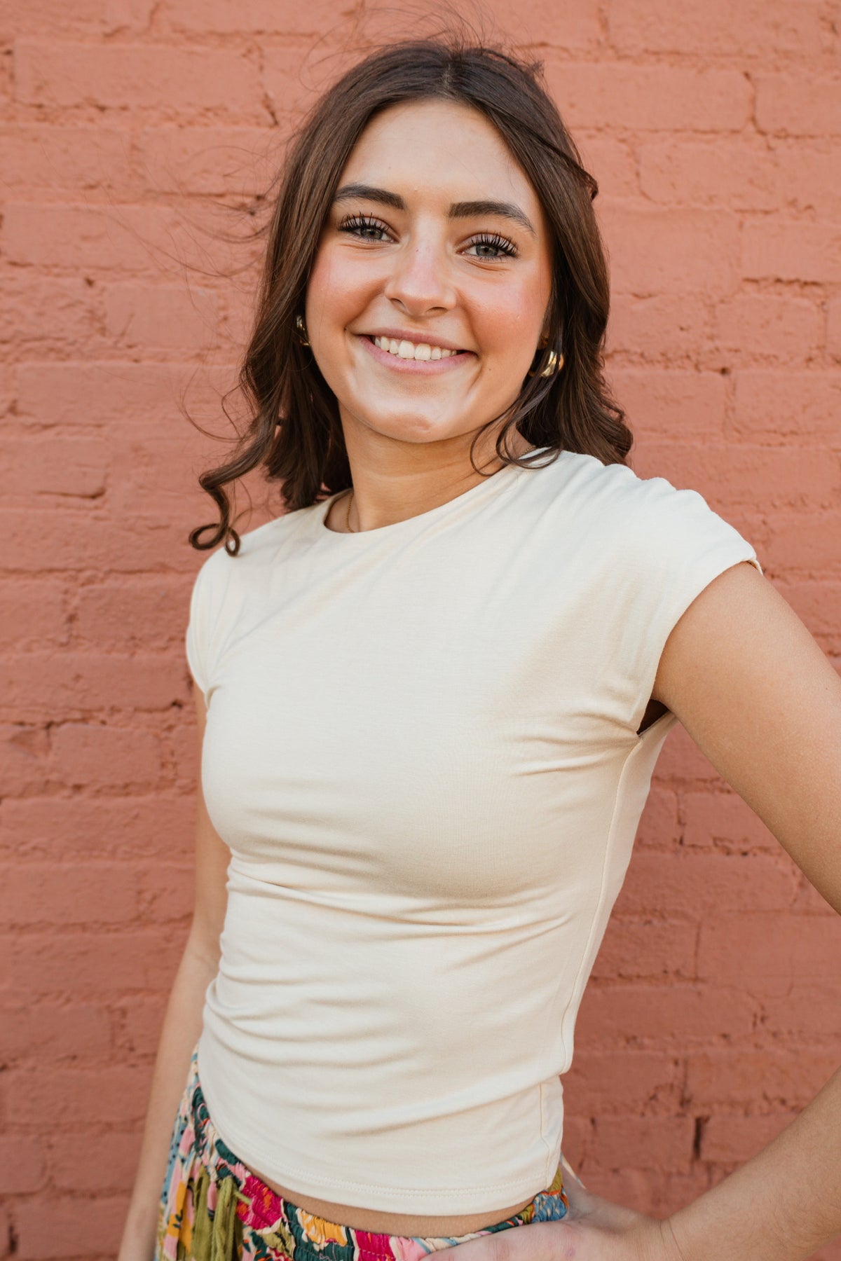 Brighten your everyday wardrobe with the Sunny Side Tee, a delightfully soft essential that feels as good as it looks. Crafted with a buttery soft double-lined fabric, this crew neck top offers a comfortable, flattering fit that works for any occasion. The classic cap sleeves add a touch of charm while keeping things breezy and effortless. Whether you're running errands or relaxing at home, this versatile tee is your new go-to for laid-back style with a smile.