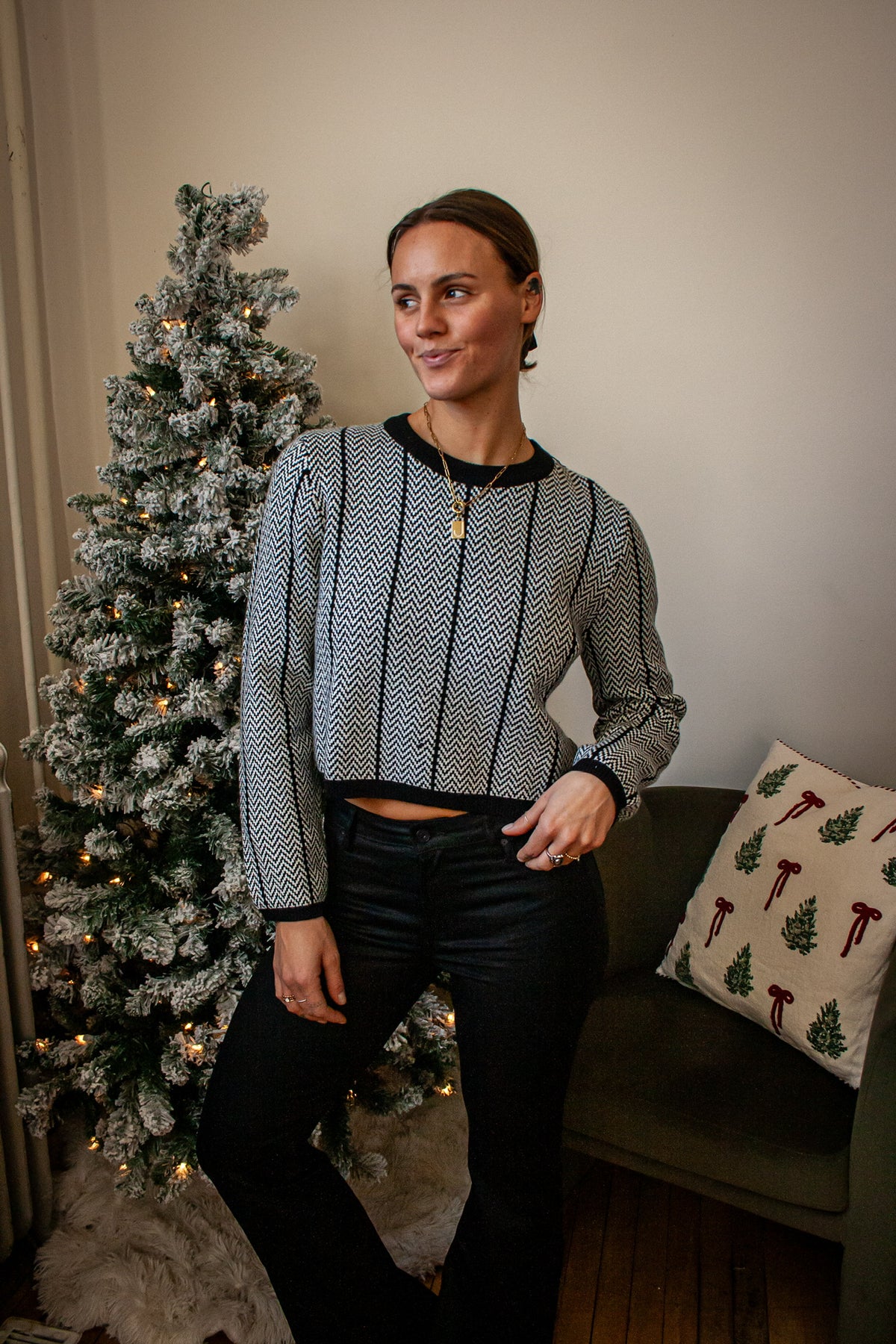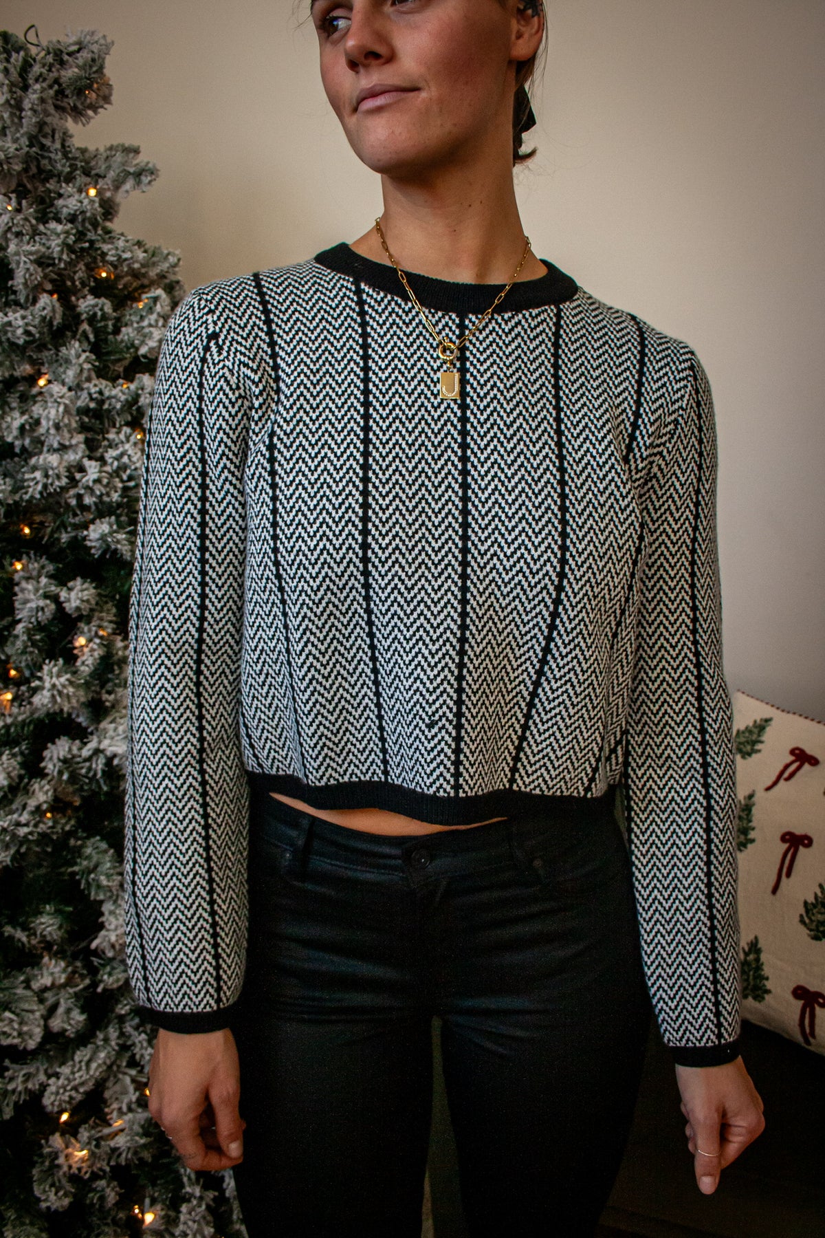 Bold and playful, the Zig Zag Crop sweater is made to stand out. With its striking black-and-white zig zag pattern and modern cropped fit, this pullover brings fresh energy to your cool-weather lineup. Easy to pair with high-rise denim or layered over a dress, it’s the perfect mix of cozy comfort and statement style.